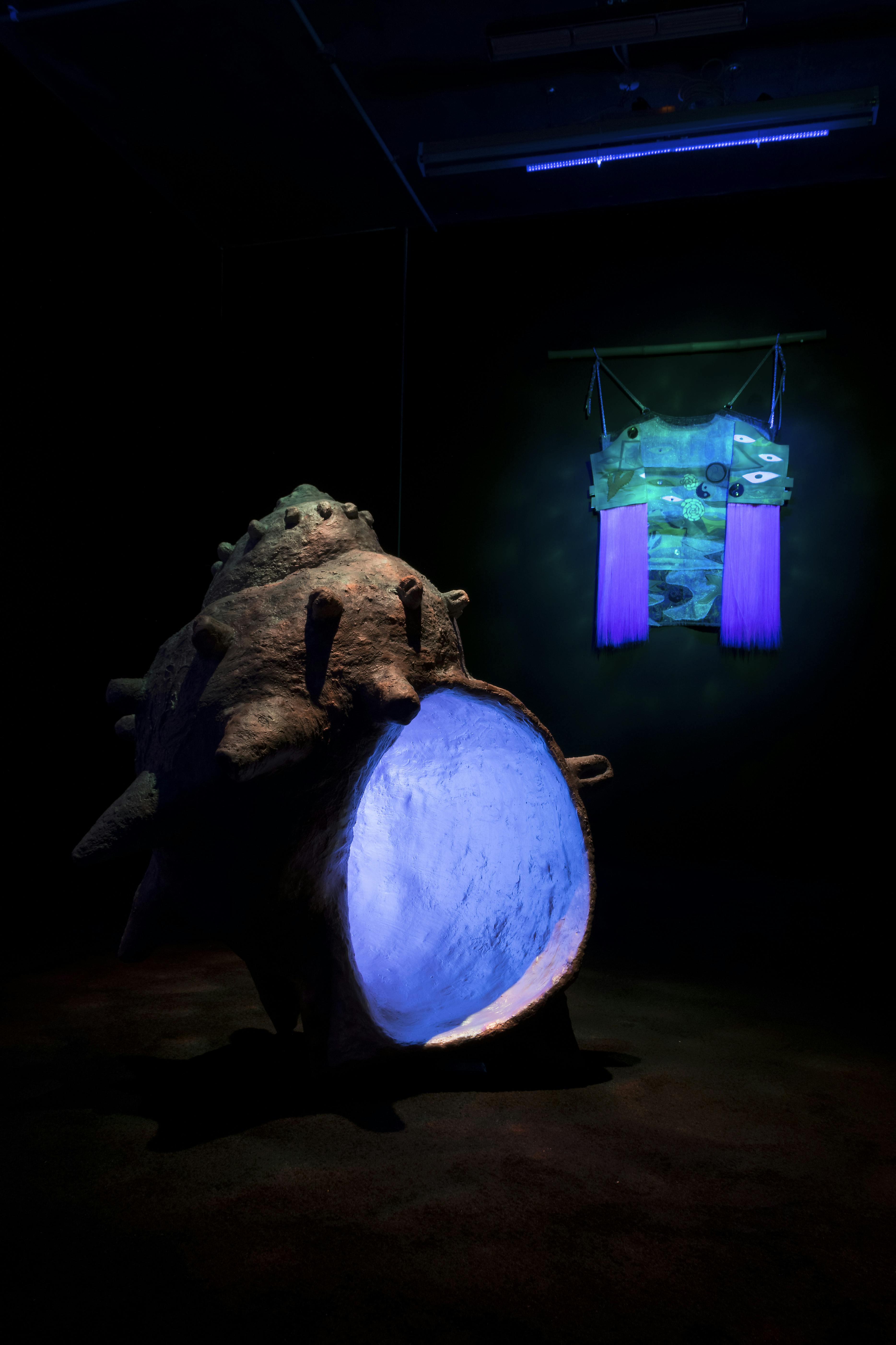 Faux Mink Suit 4 A Deep Sea Dive, 2018, hand sewn and machine stitched assorted fabrics, faux fur and synthetic hair on bamboo, 110 x 130 cm