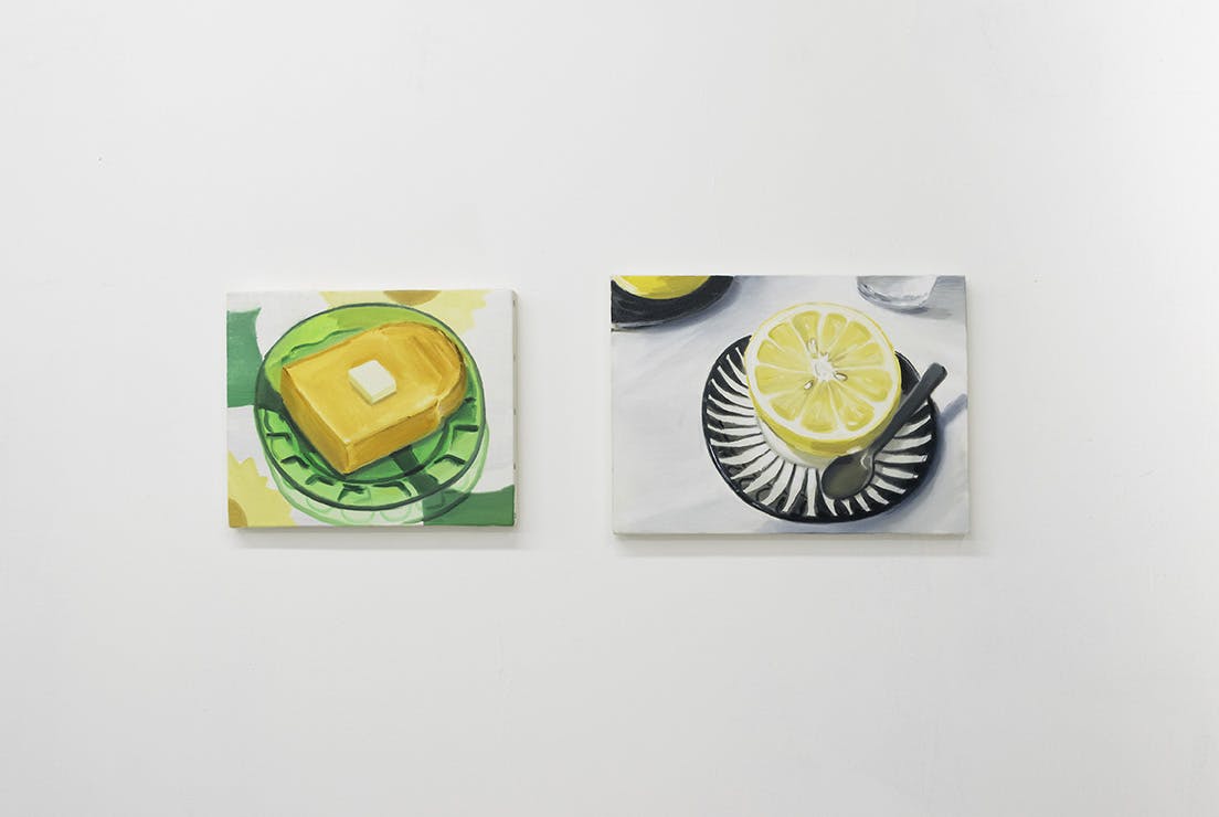 (left to right), Ulala Imai (Union Pacific), Green, oil on canvas, 22 cm x 27.3 cm and GRAPE FRUITS, 2017, oil on canvas, 24.2 cm x 33.3 cm