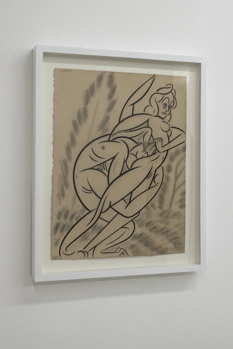 Koak (Union Pacific), The Gift, 2017, graphite and casein on kraft coloured rag paper, 38 x 28 cm