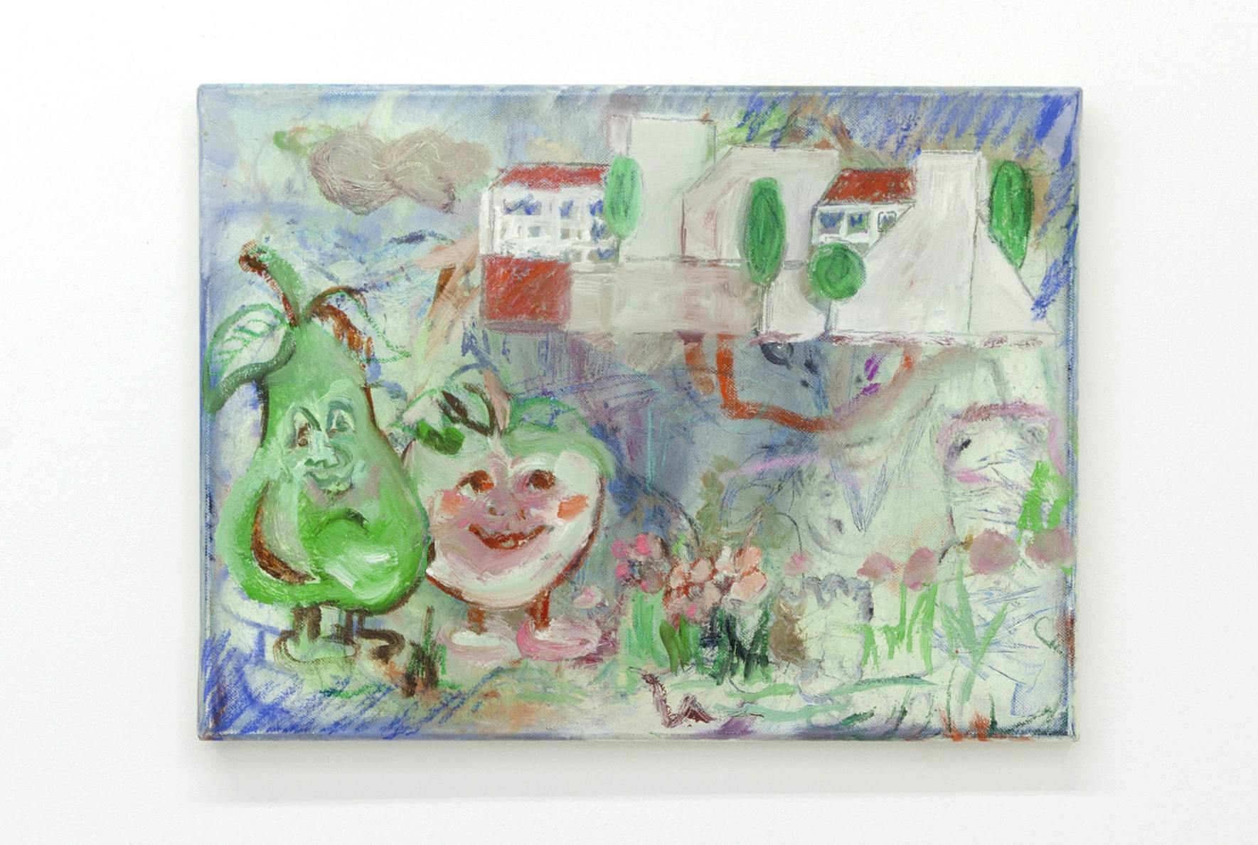 Isadora Vogt, Helene und Thomas, 2020, mixed media, oil, oil pastels on canvas, 46 x 78.5 cm