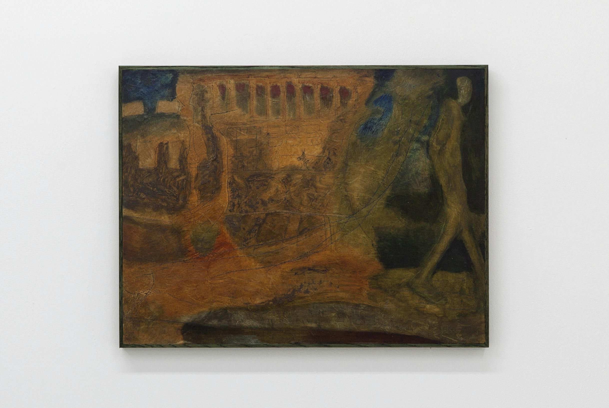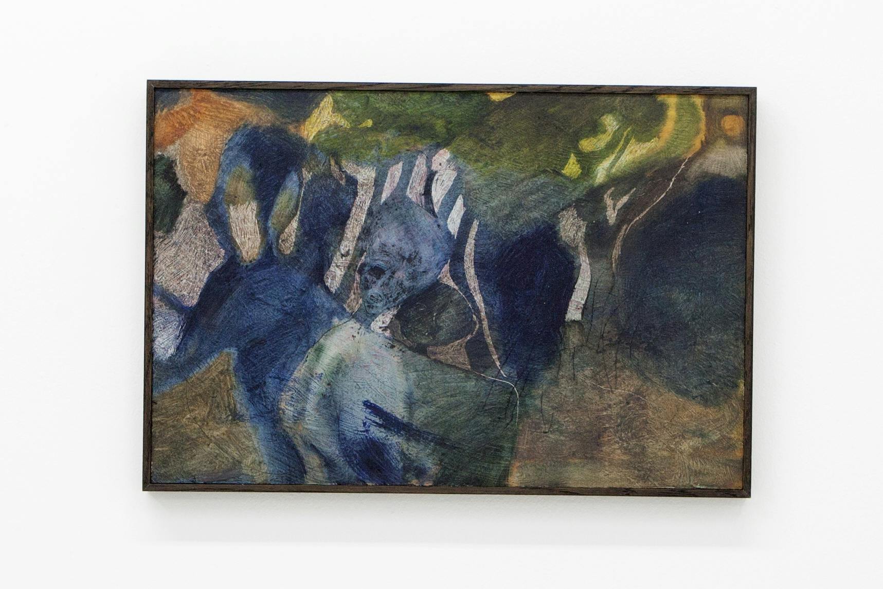 Martin Aagaard Hansen, Mikalati, 2020, oil, engraving, gesso and varnish on panel, artists frame, 38 x 50 cm