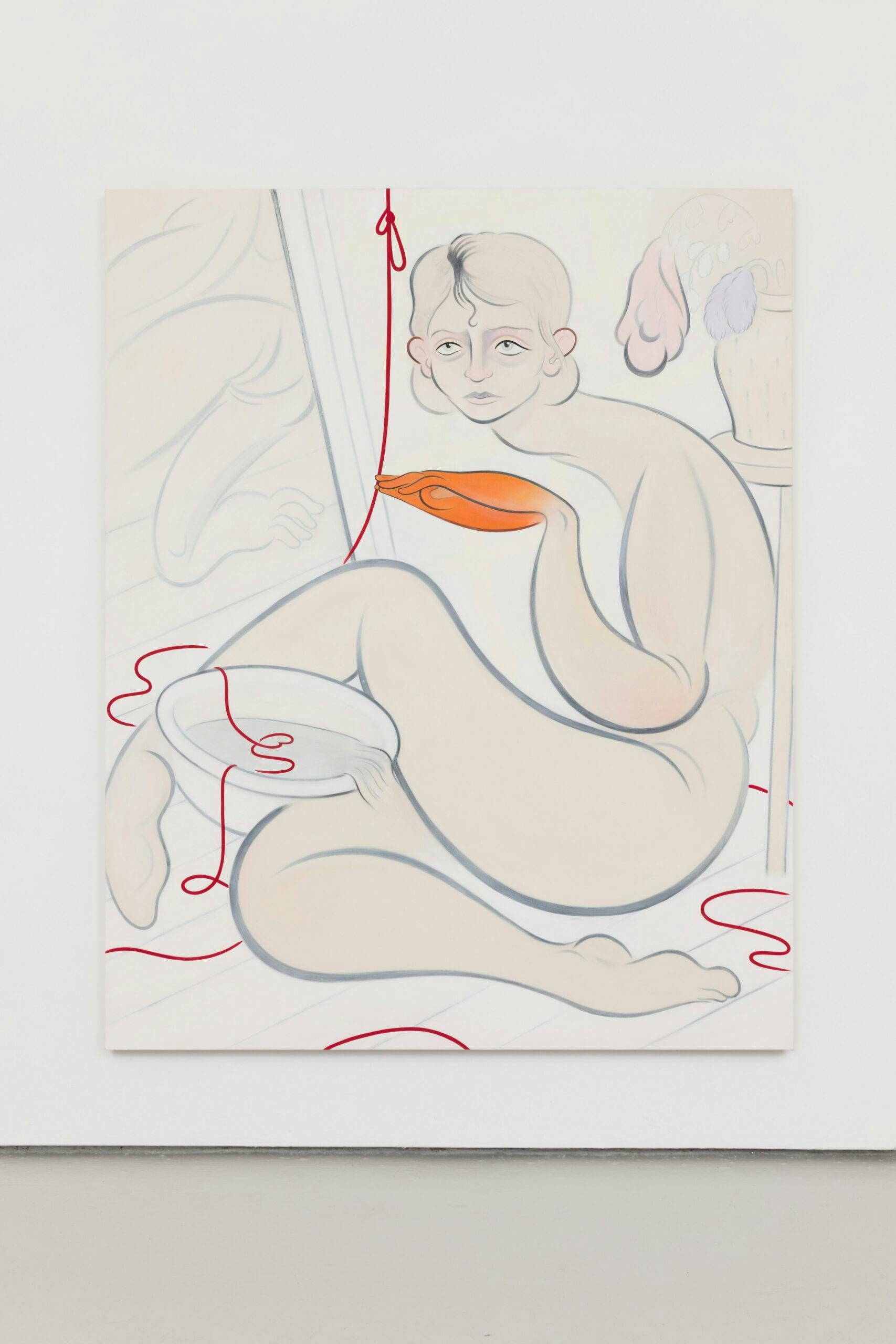 Koak, Red String, 2021, acrylic, pastel, graphite and casein on canvas, 195 x 157 cm