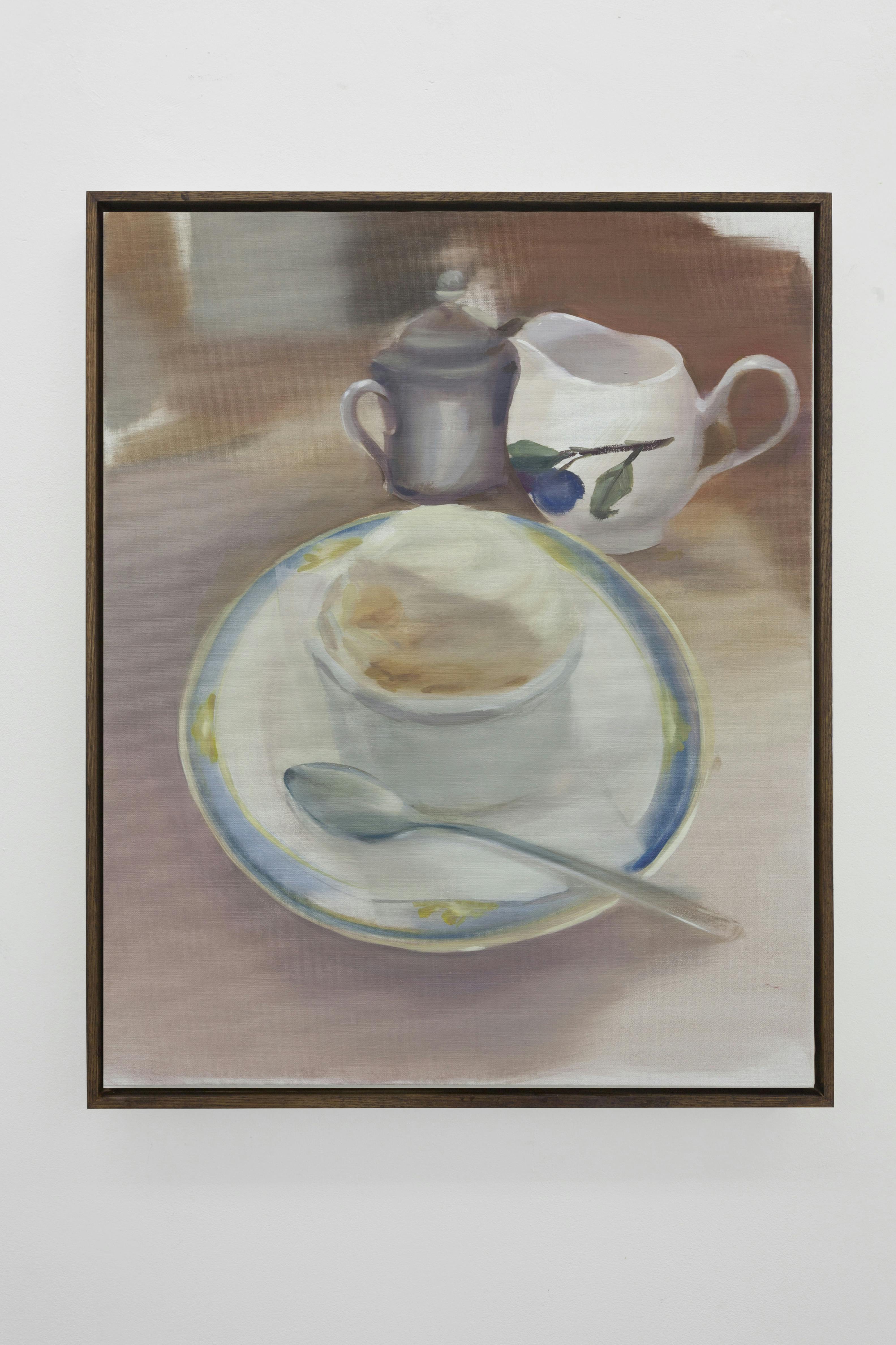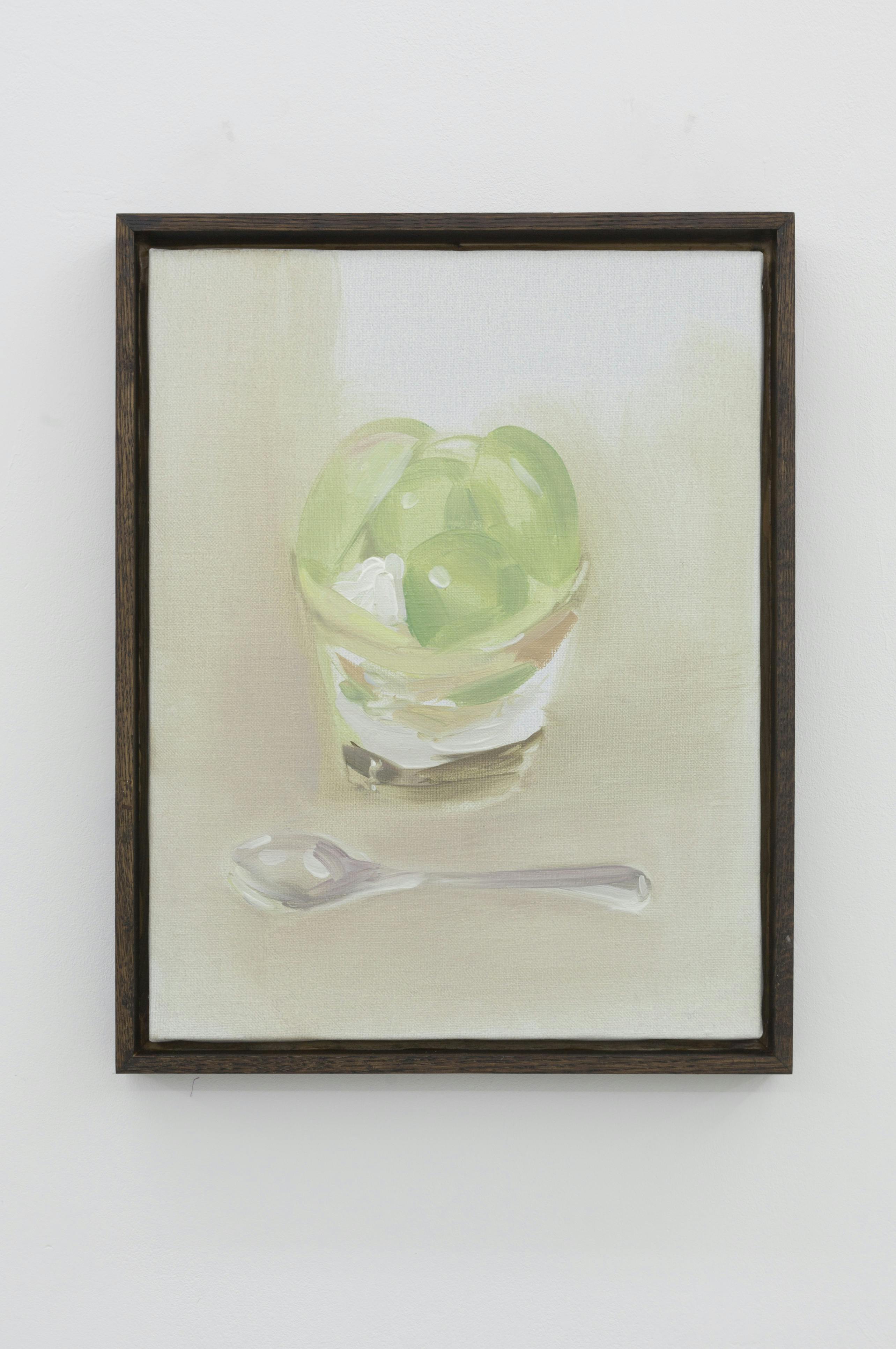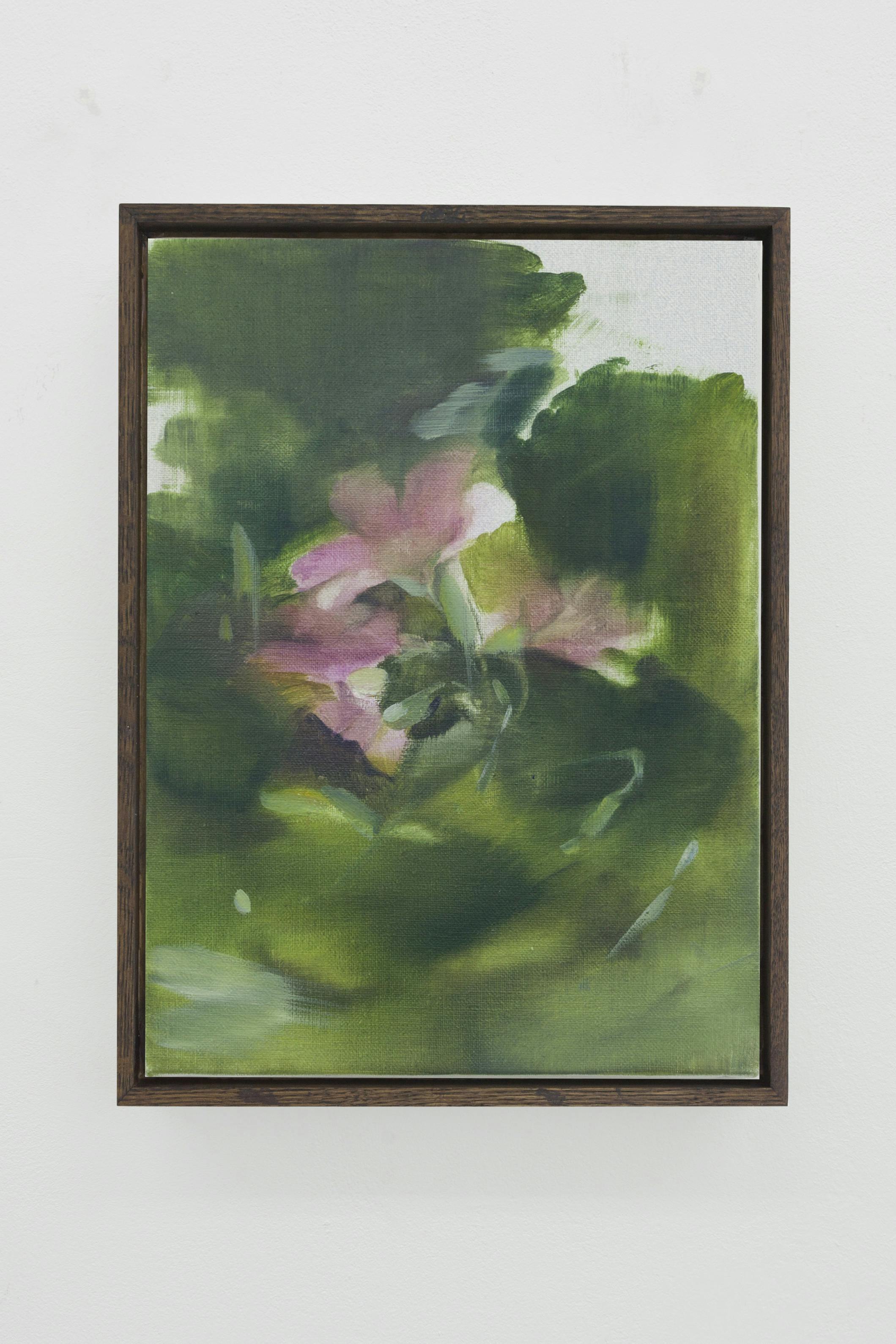 Aya Higuchi (b. 1988, Tokyo, Japan) lives and works in Tokyo. Higuchi’s small-scale oil paintings depict scenes from nature or domesticity, such as peaches placed on a glossy white plate, or greenery viewed through the mist of rainfall. She chooses quotidian subjects to elevate to the expanse of an entire canvas.