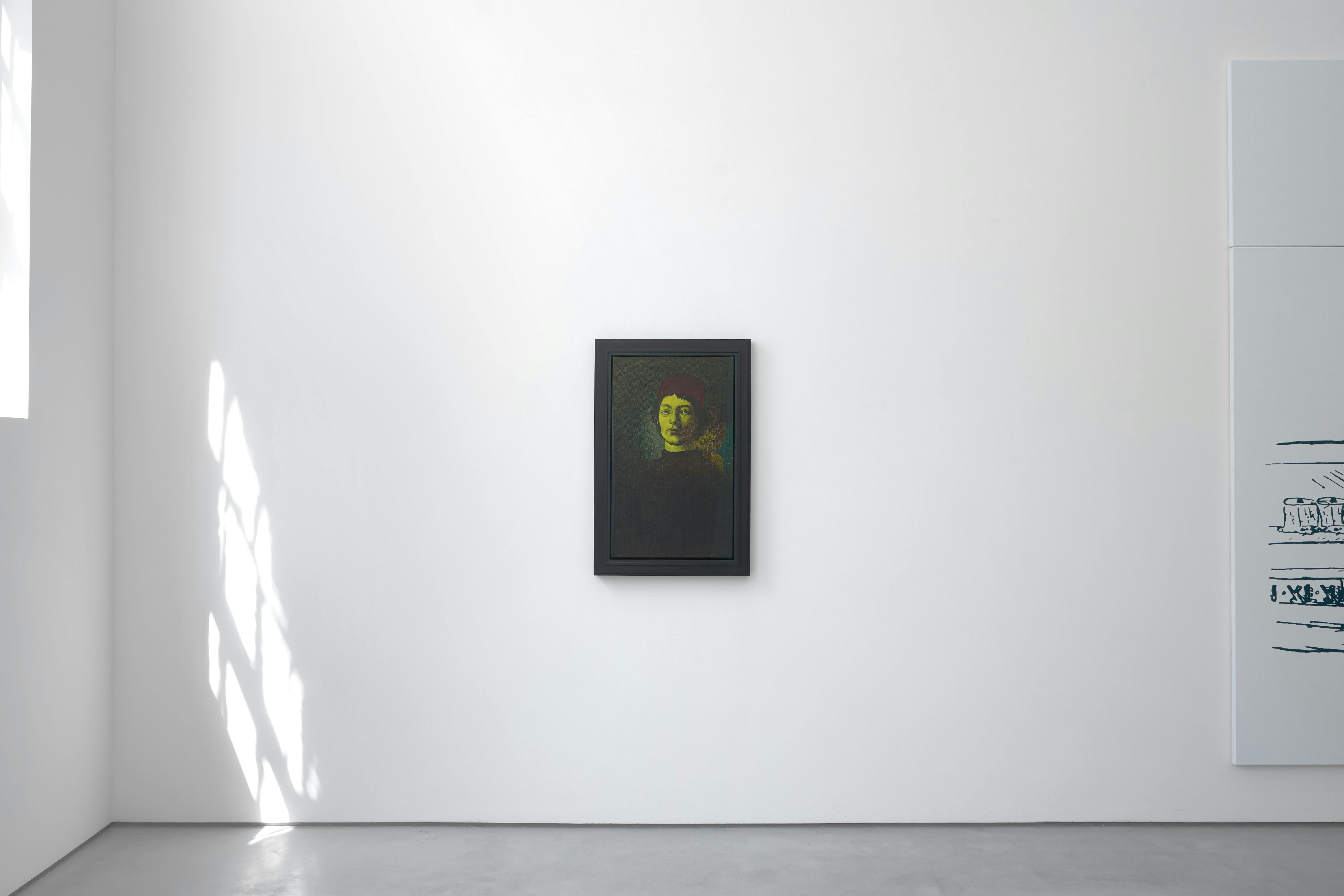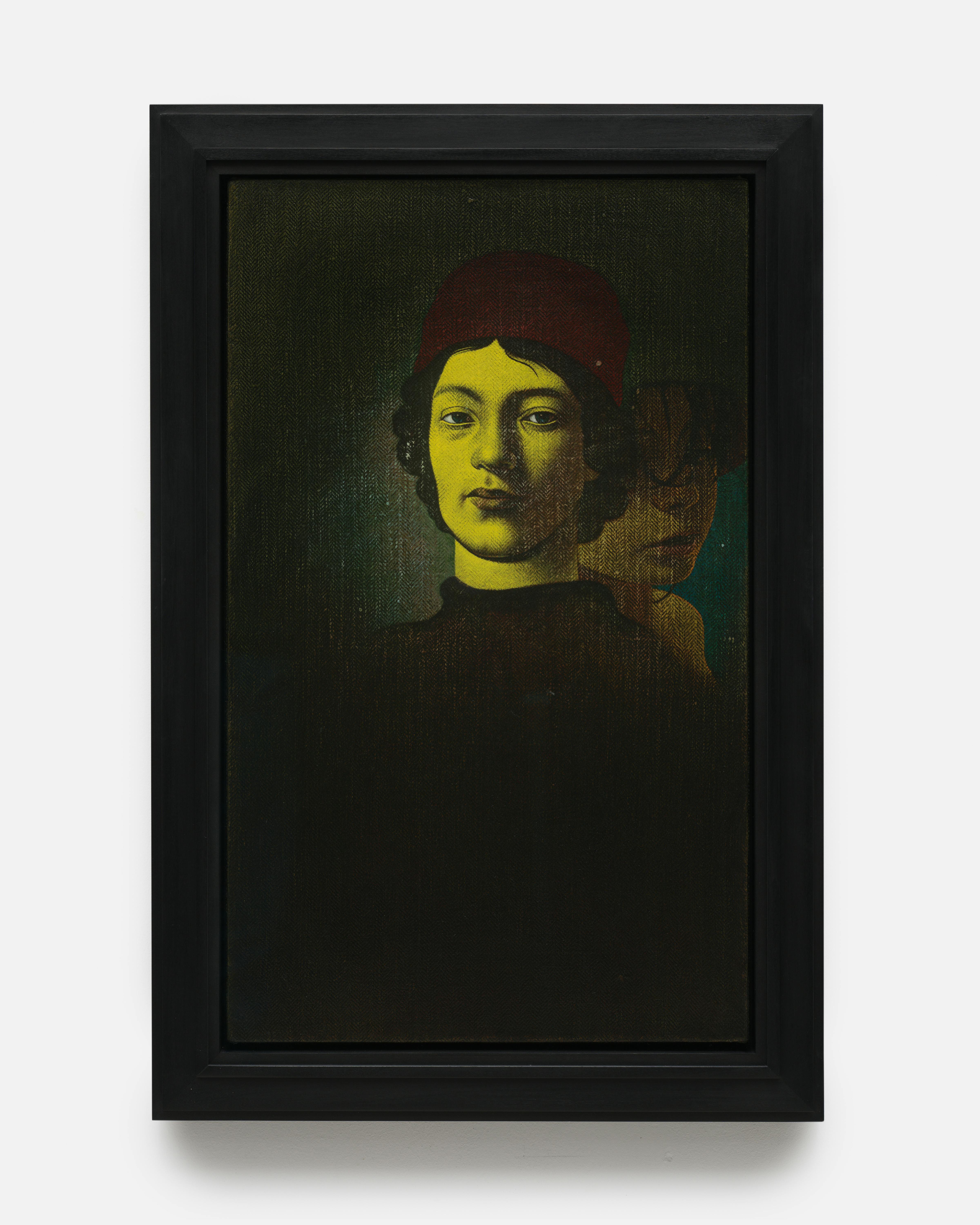 Oliver Osborne, Portrait of a Youth (after Filippino Lippi), 2025, oil on herringbone linen, 57.5 x 45.5 x 3 cm / 88.5 x 58.5 x 6 cm with frame