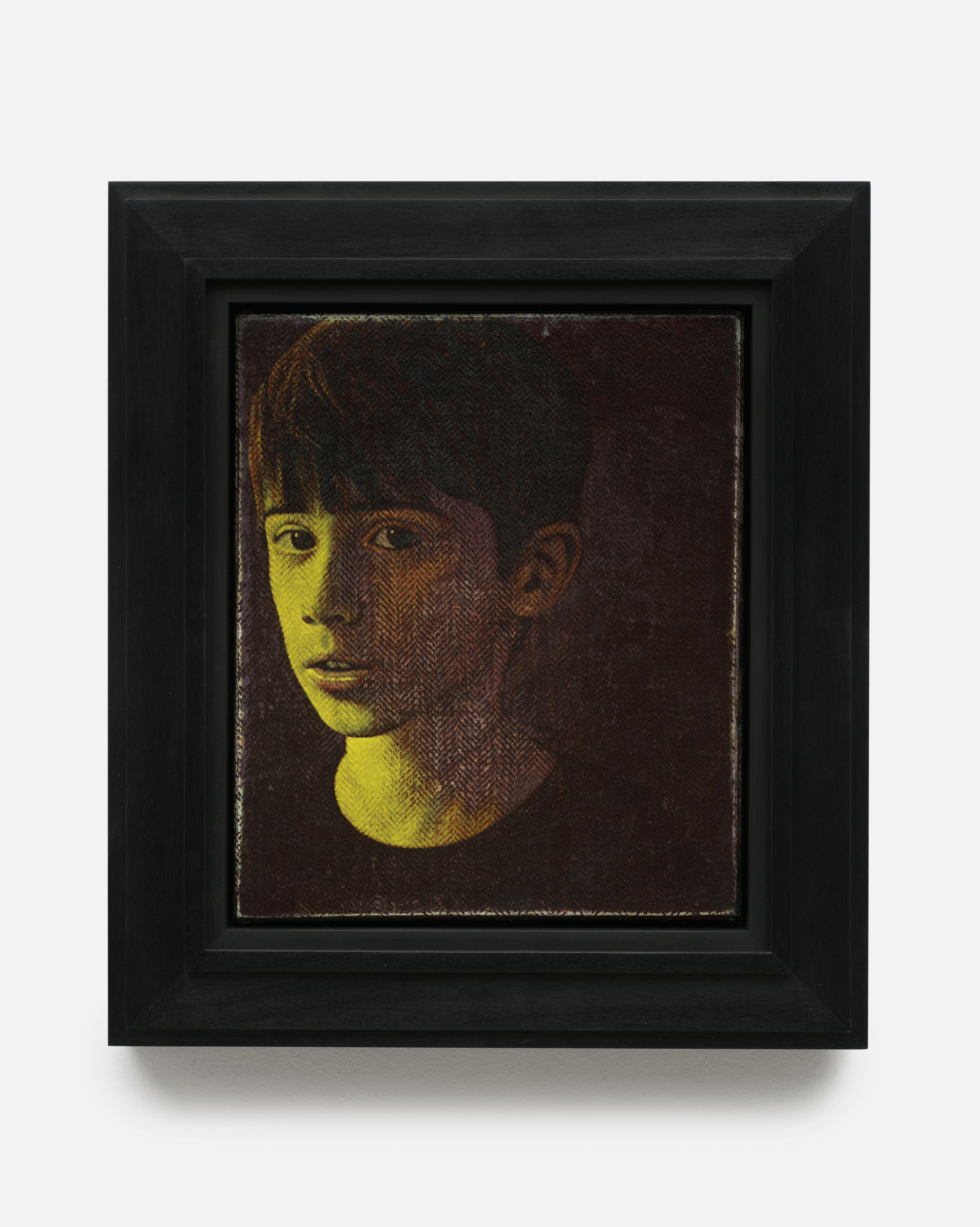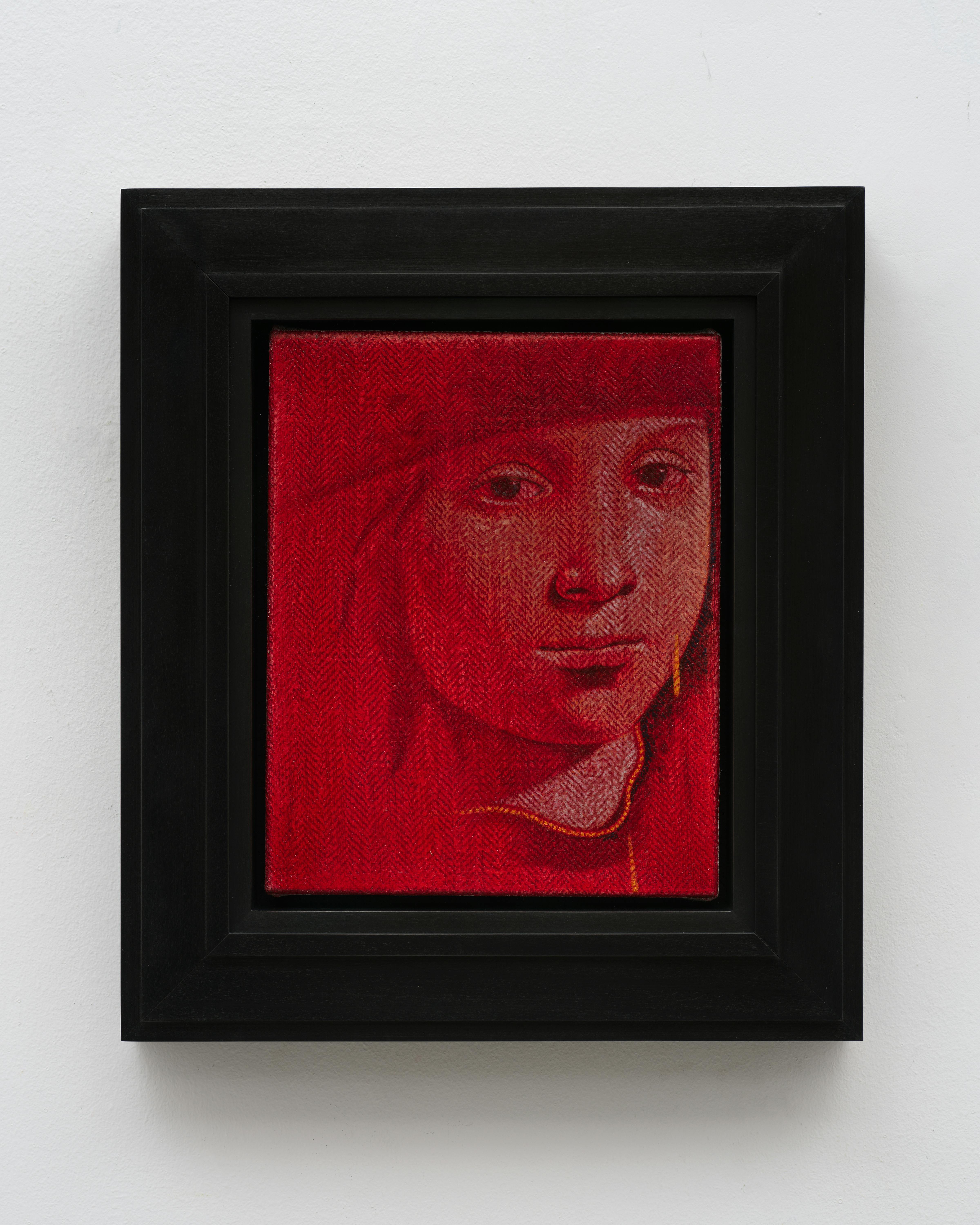 Oliver Osborne, Portrait of a Youth (after Filippino Lippi) II, 2025, oil on linen, 25 x 20.2 x 3 cm / 34 x 29 x 6 cm with frame