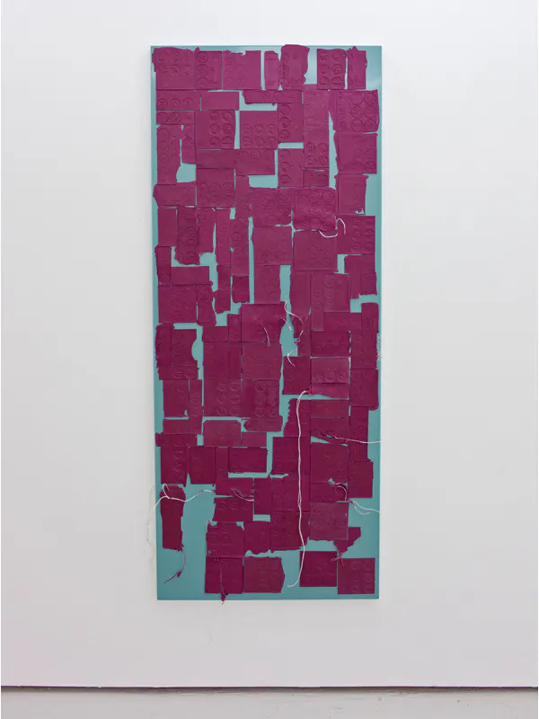 Untitled (Detail), 2016, tinted hard plastic cast from UV-cured photopolymer, baling twine, laser-cut, bent and powder-coated steel sheet, 179 x 73 cm
