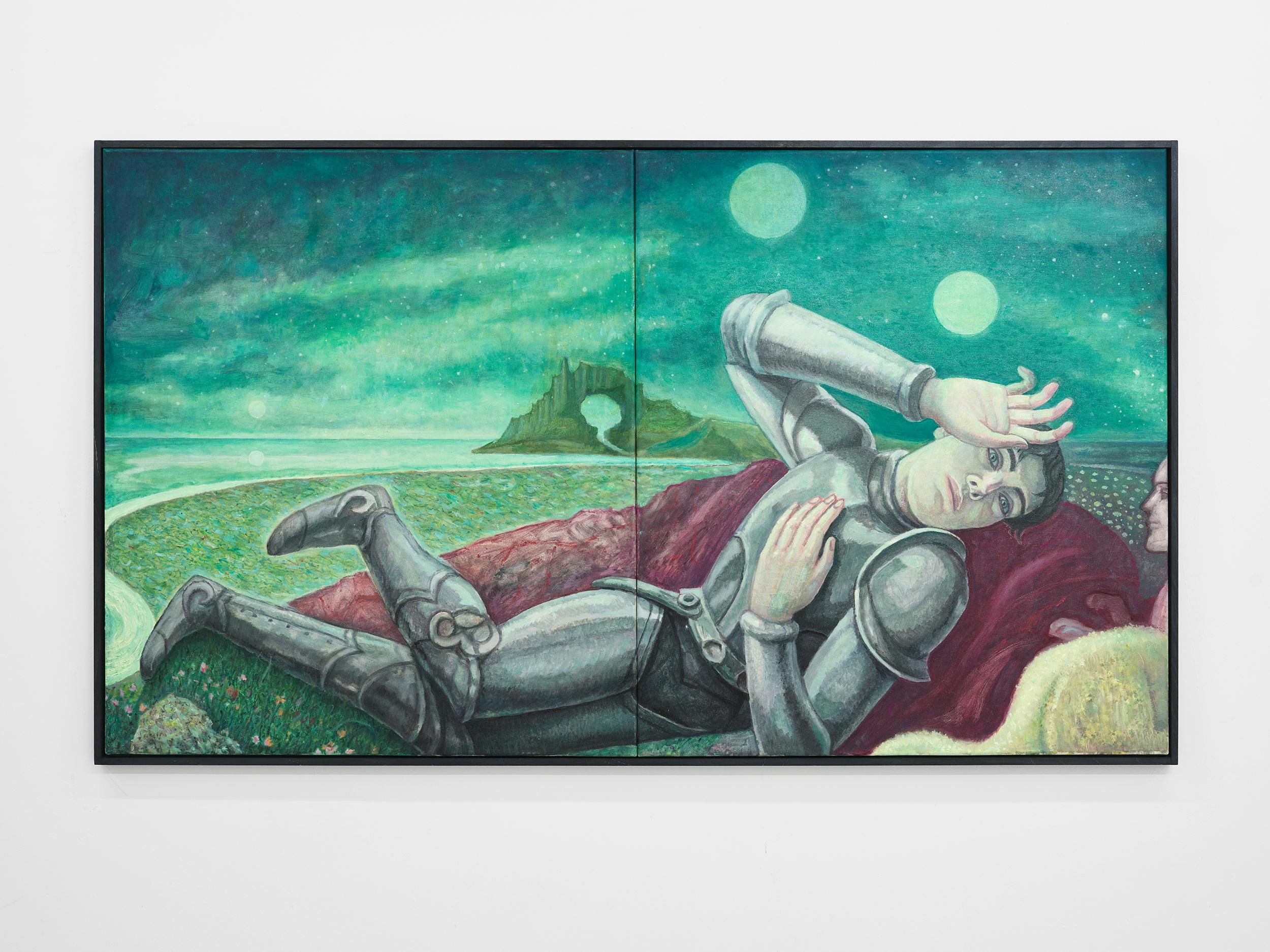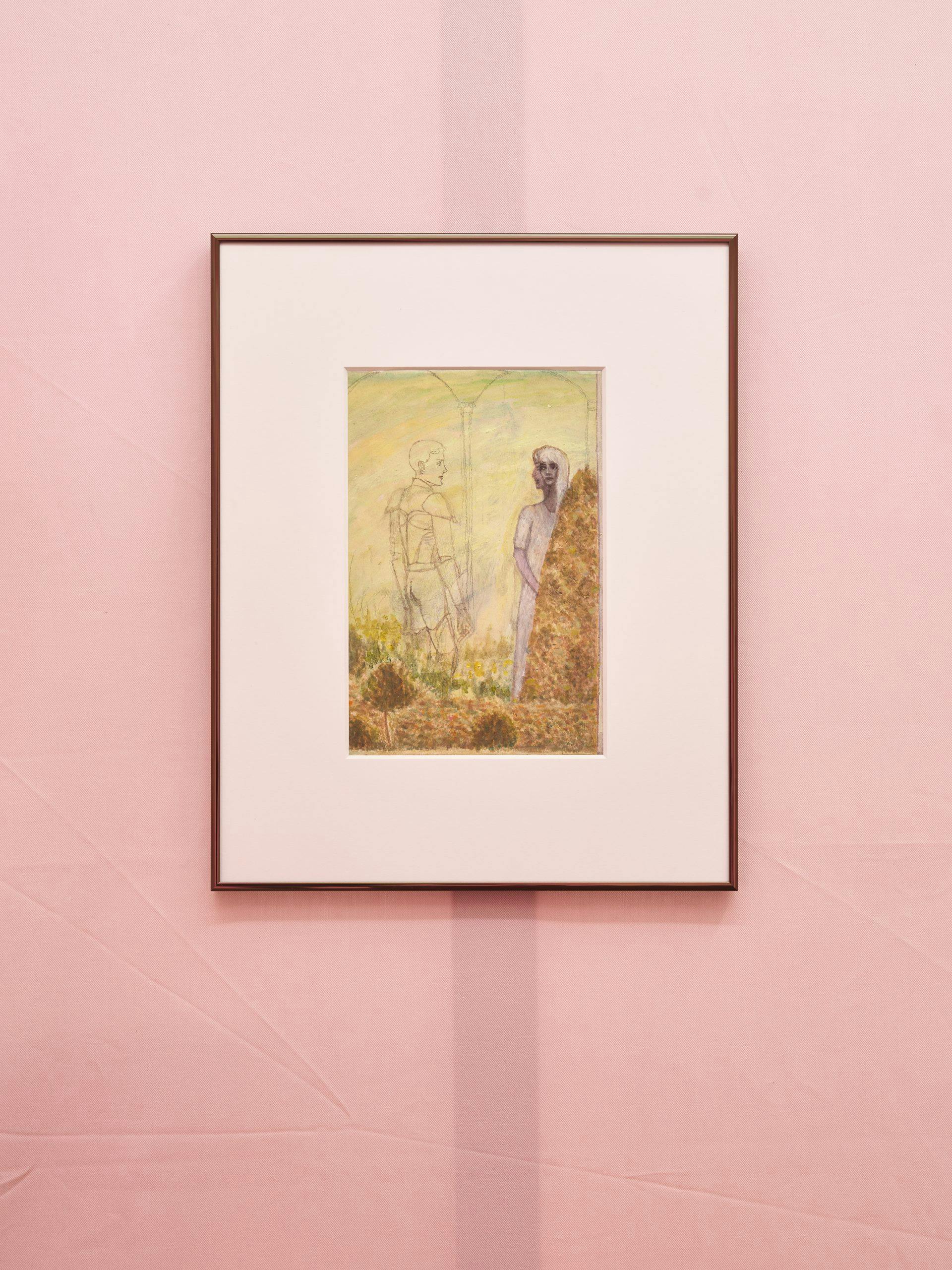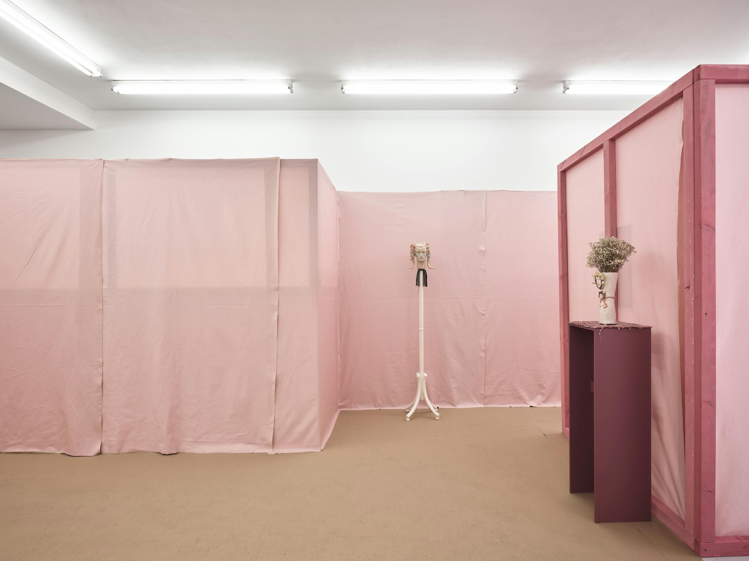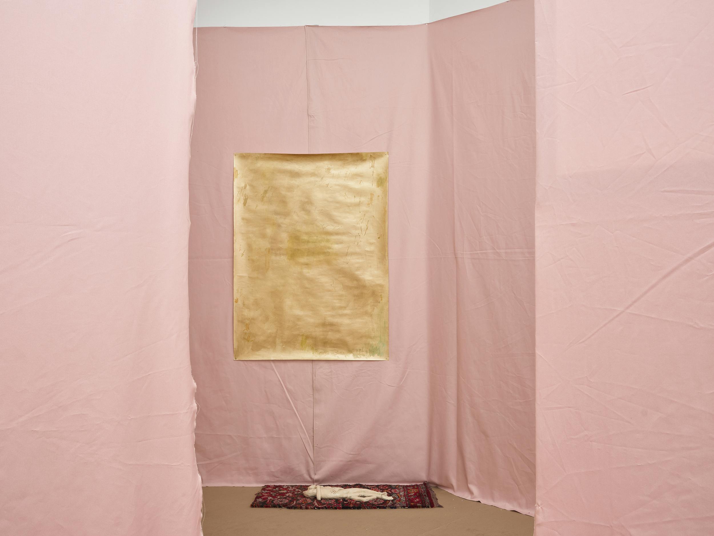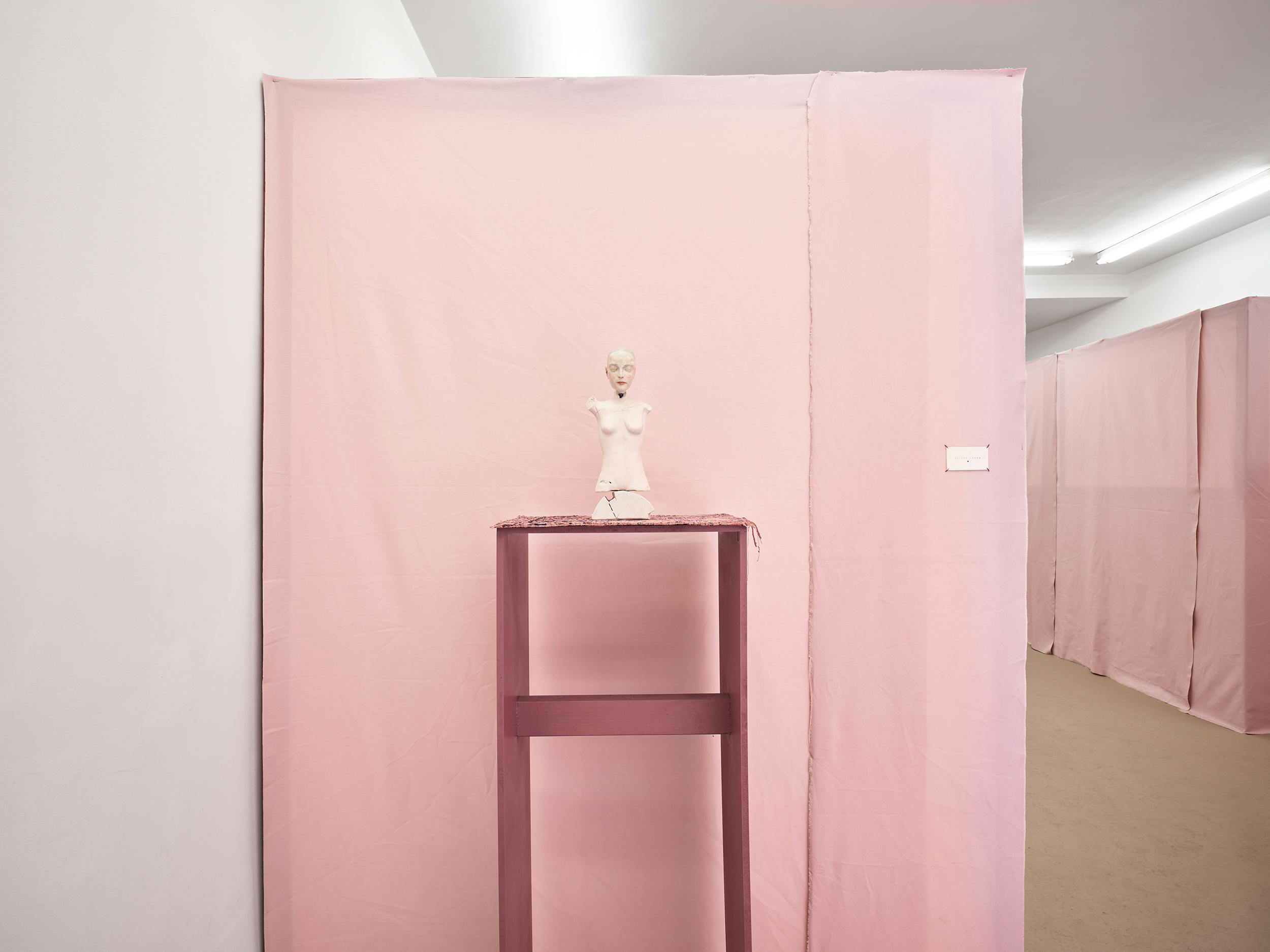 Glaze on ceramic, oil paint, ink, artificial hair & carpet