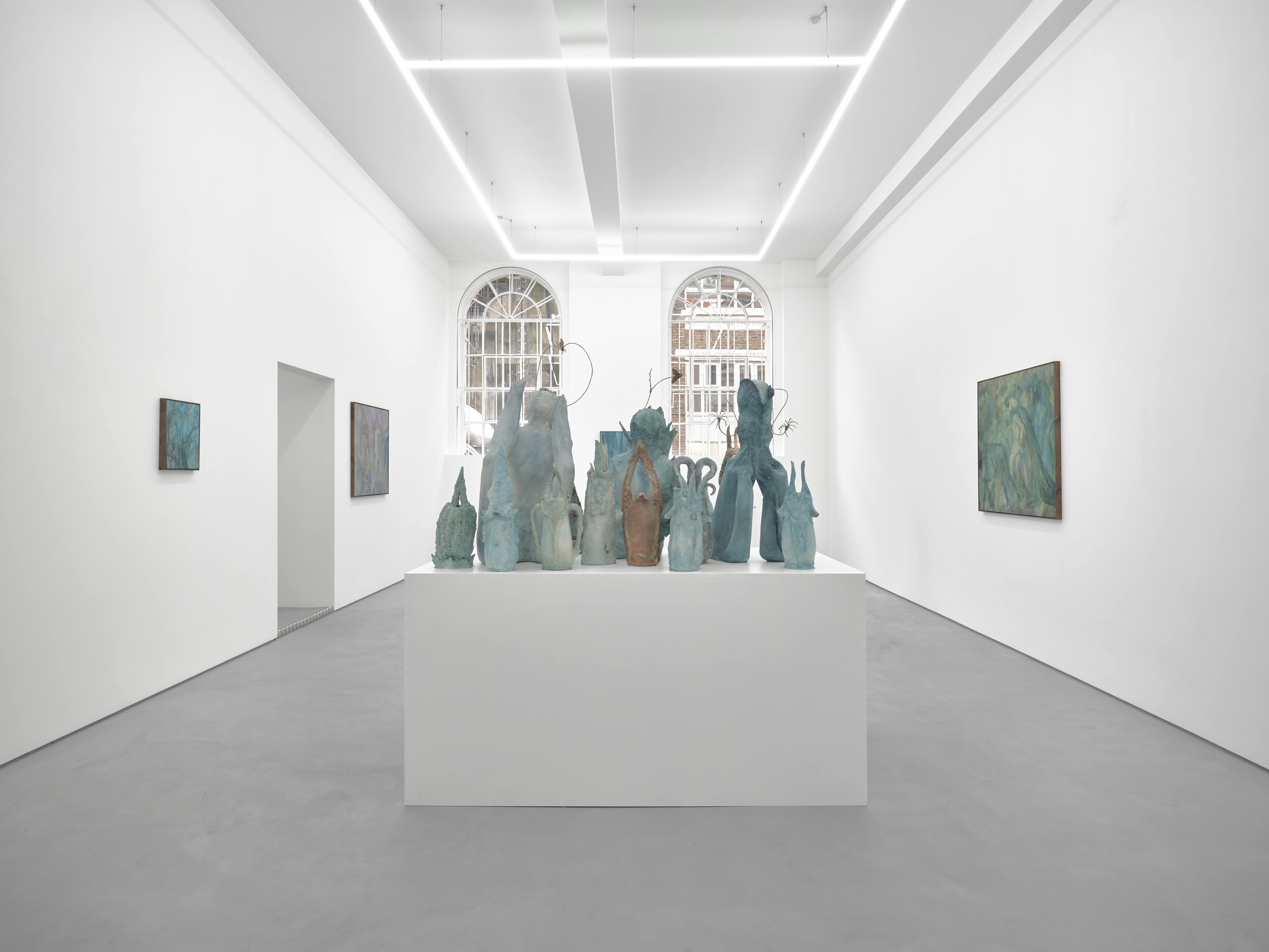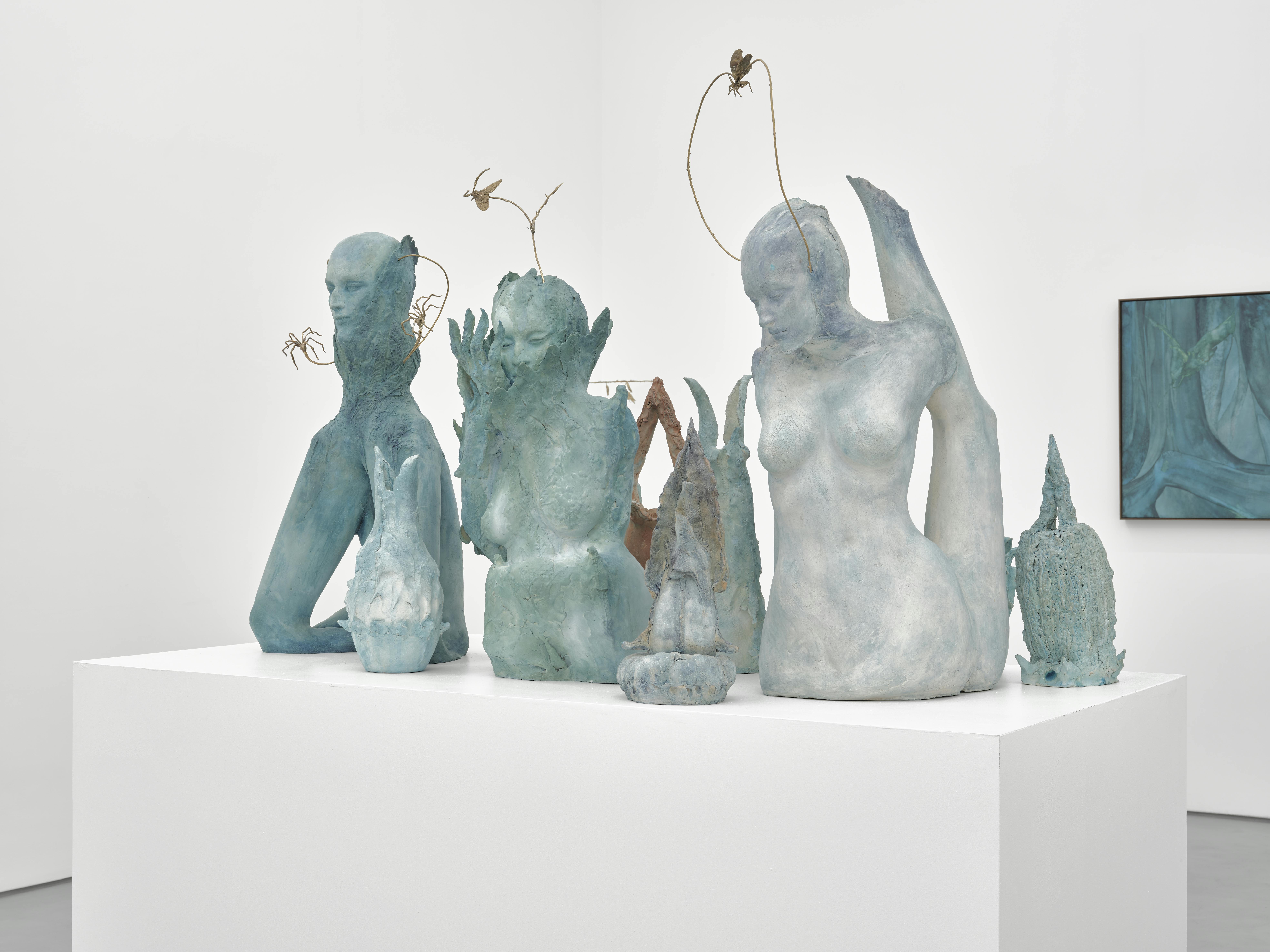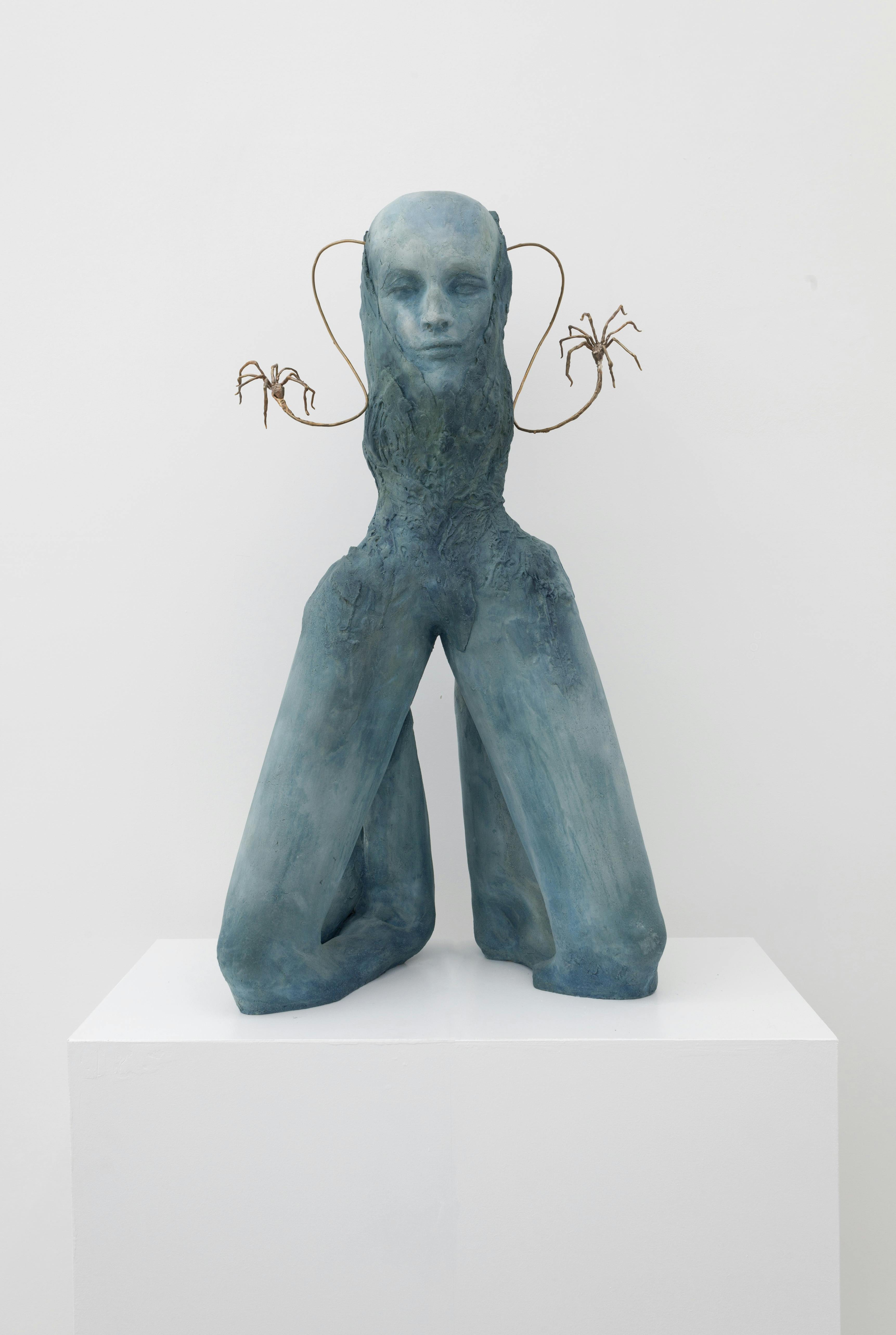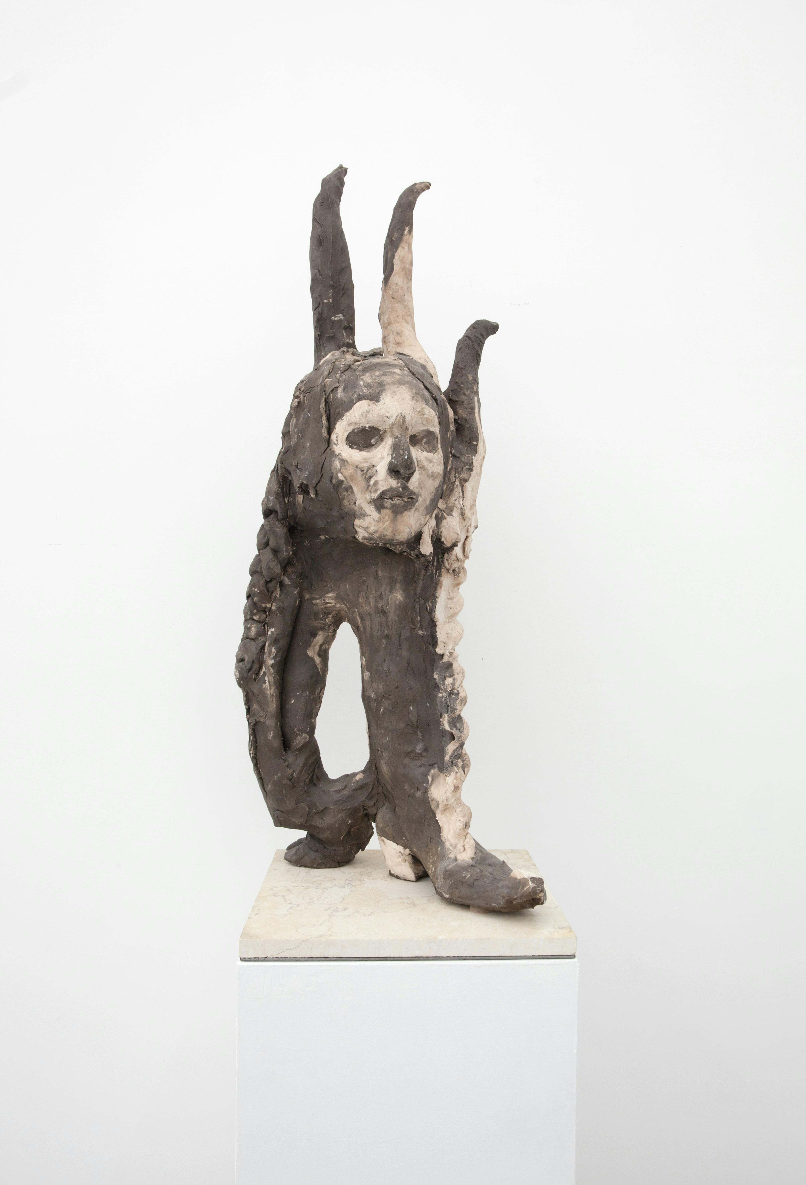 Emiliano Maggi (b.1977, Rome, IT) lives and works in Rome. The artist works with imagined worlds in which normative representations of identity are disrupted– whether male or female, animal or human. Spanning references from mythological symbolism and Shakespearian theatre to 1970s horror and modern drag, Maggi’s practice is informed by a fascination with the body, and the ways in which immaterial aspects of existence– fantasy, sensuality, the soul– interact with the material figure. Whether through sculpture or painting, dance or music, the artist stretches the boundaries of figuration whilst traversing the mysteries of consciousness.