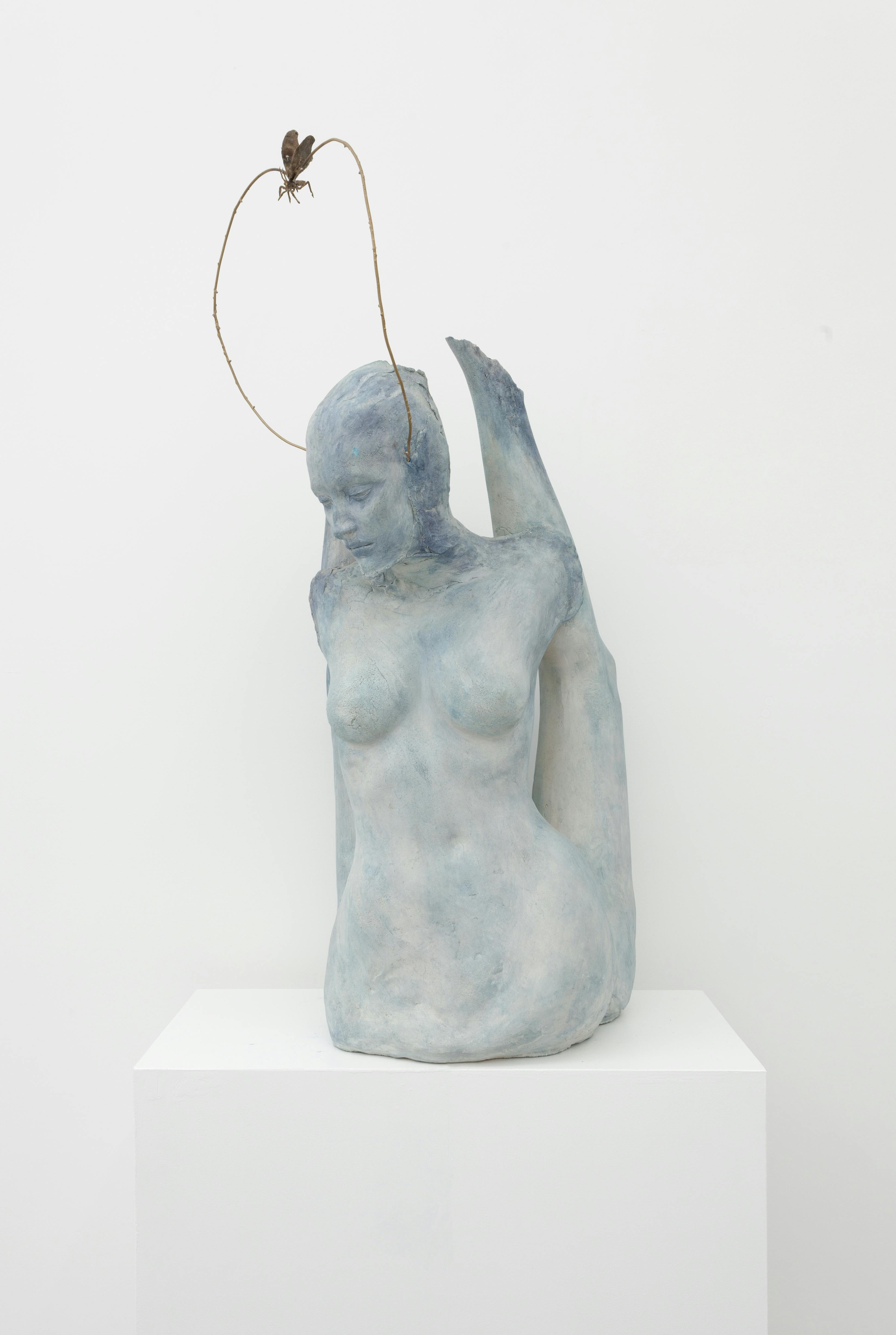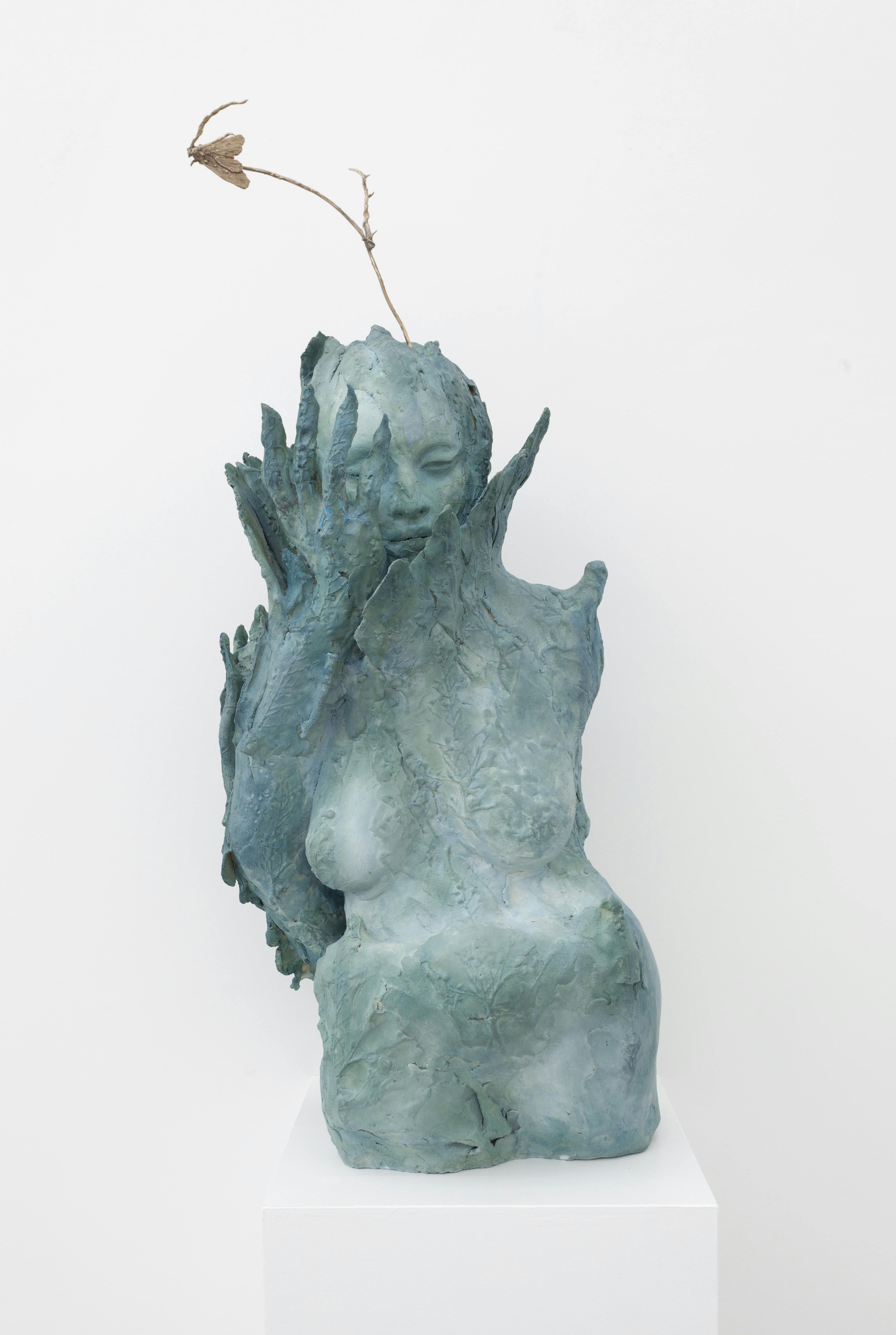 Celestial Bloom (with butterfly crown), 2023, unglazed ceramic, pigment and bronze, 95 x 50 x 50 cm