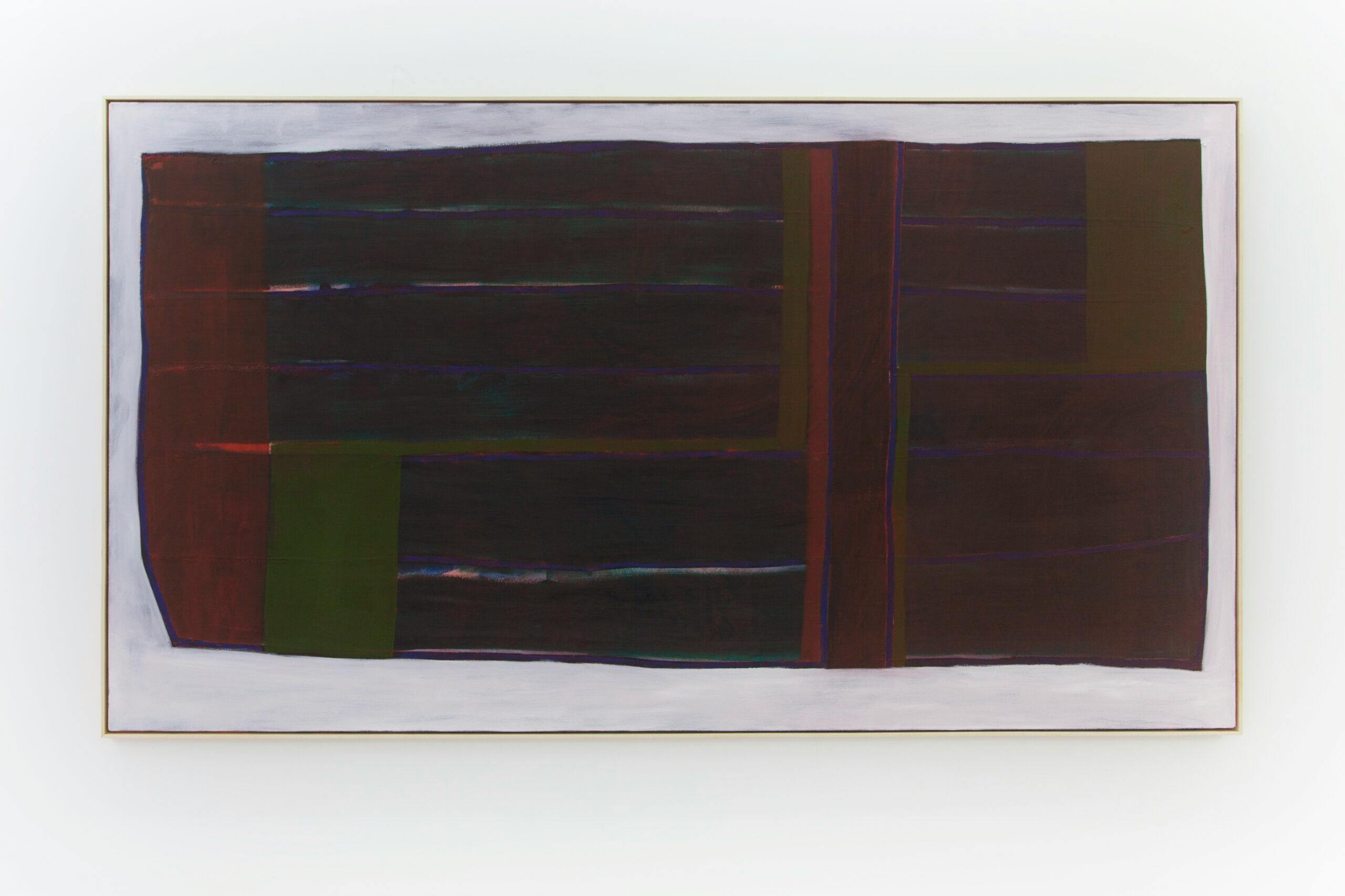 Untitled (black field, red field, blue lines, green, white), 2017, oil on canvas, 134 x 195 cm