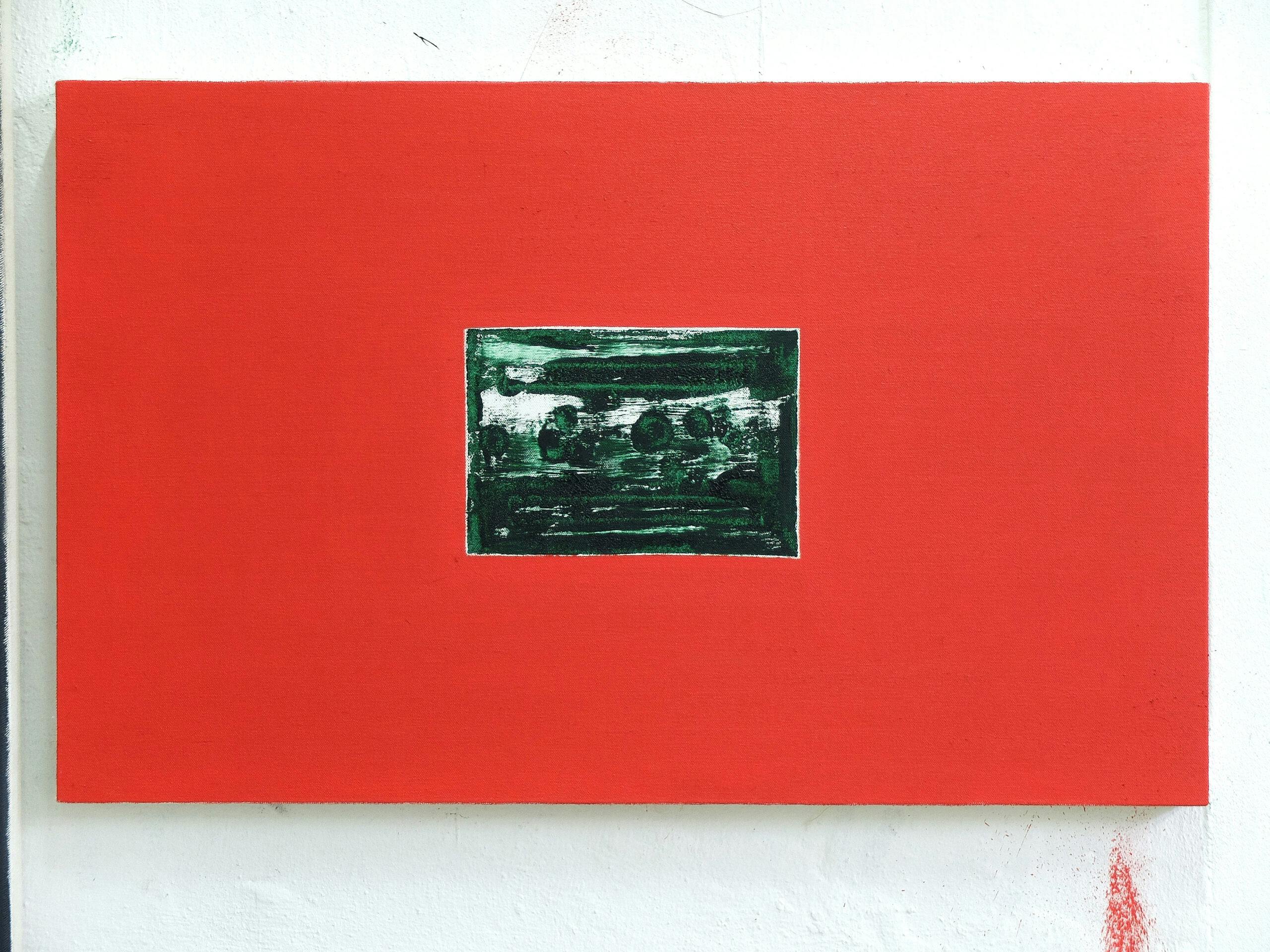 Untitled (imprint I, green on white, red), 2020, oil on canvas, 90 x 55 cm