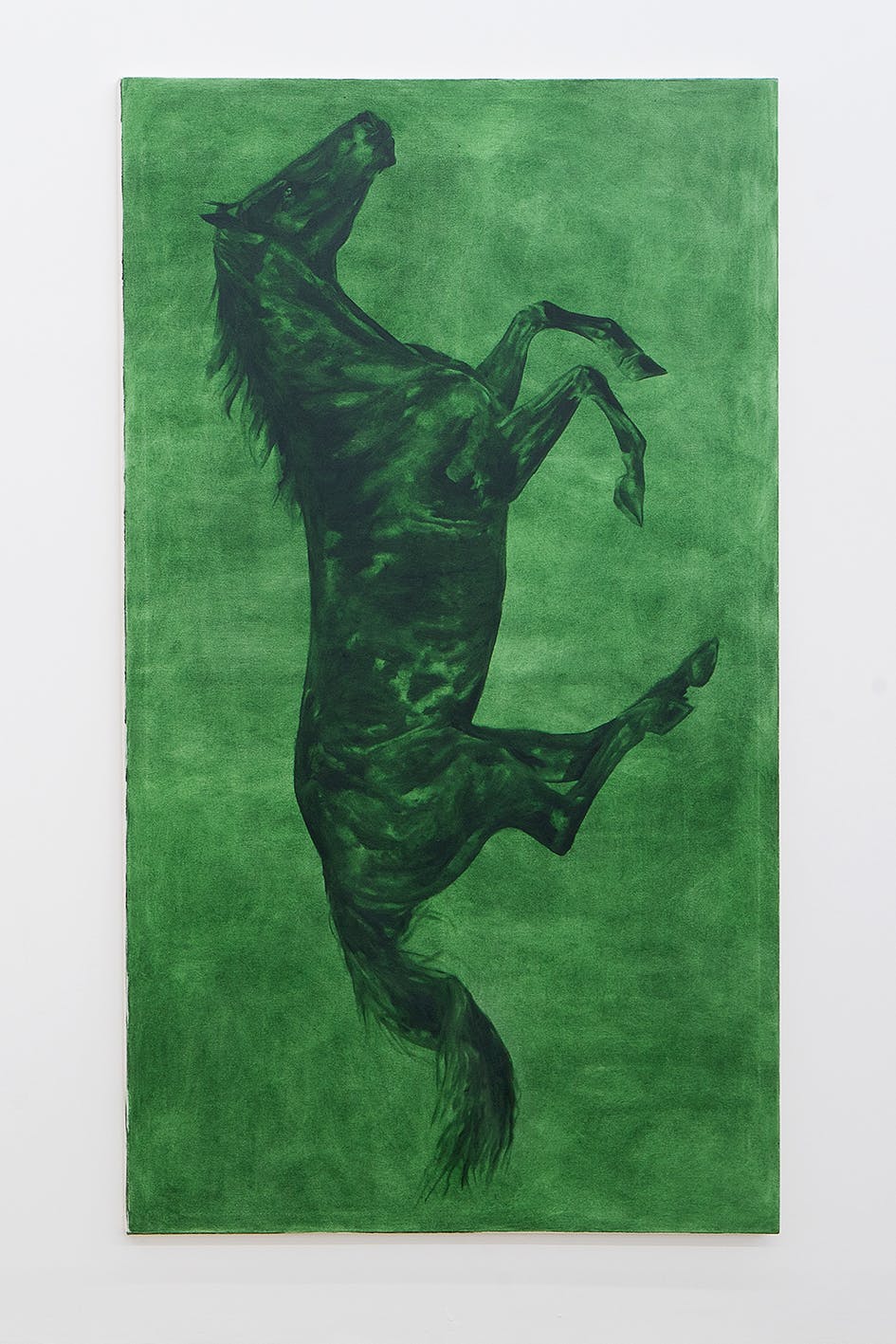 Untitled (green horse, green background, vertical), 2017, oil on canvas,130 x 230 cm