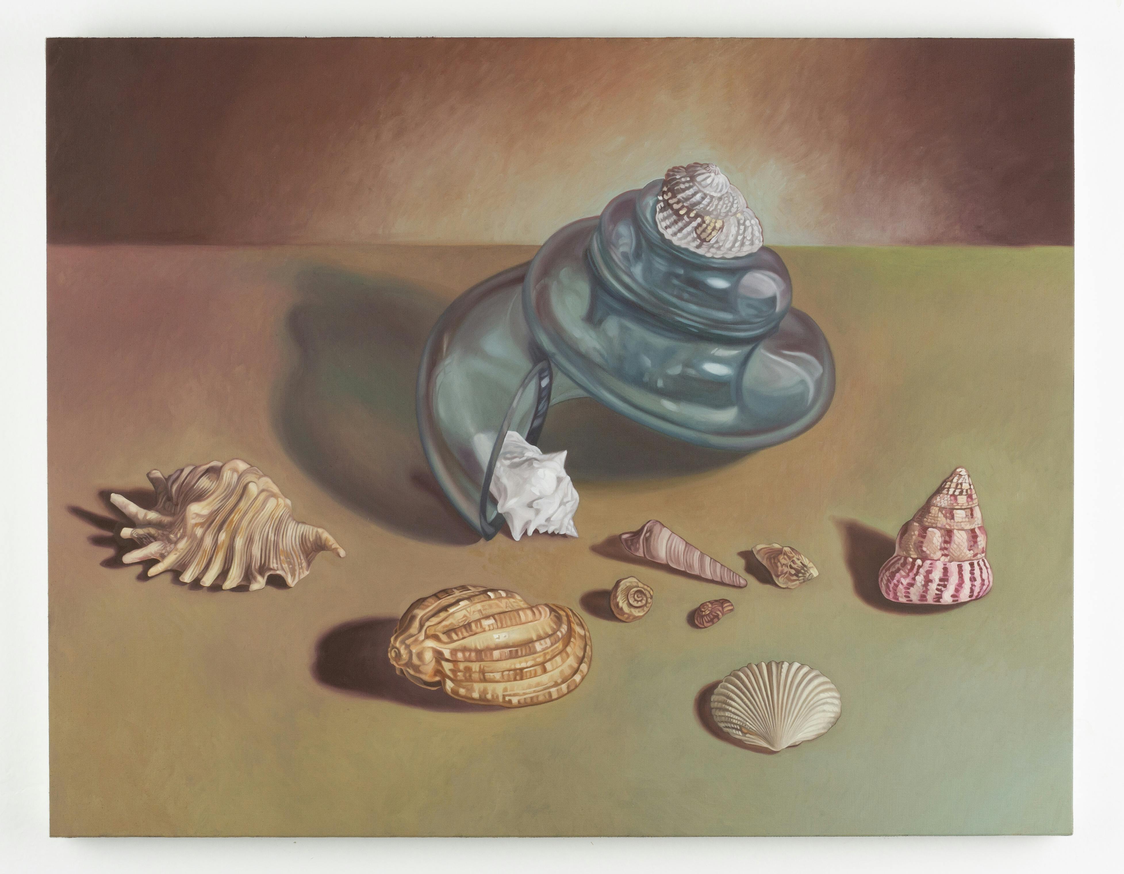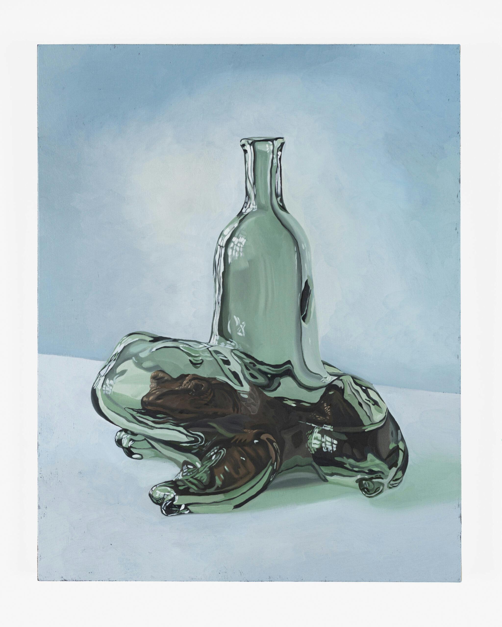 A Letter to My Mother, in a Bottle Shaped Like Her Head, Which, When Thrown into the Ocean, Will Find its Way to Her, 2020, oil on panel, 35 x 27 cm