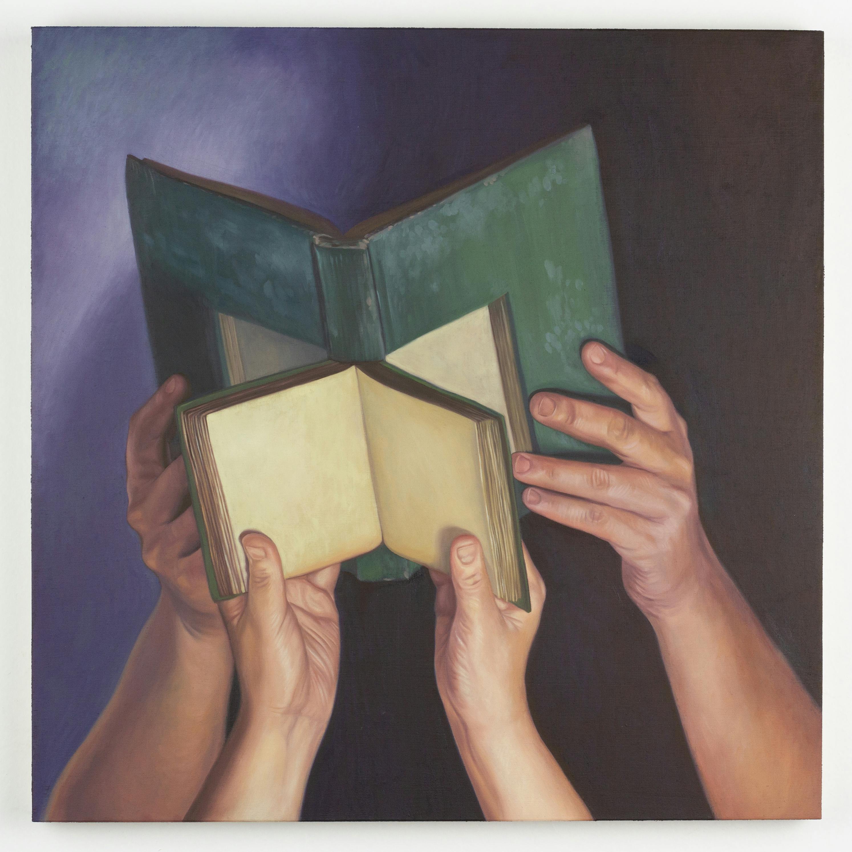 Reader, 2024, oil on panel, 11 x 11 x 1 in (27.94 x 27.94 x 2.54 cm)