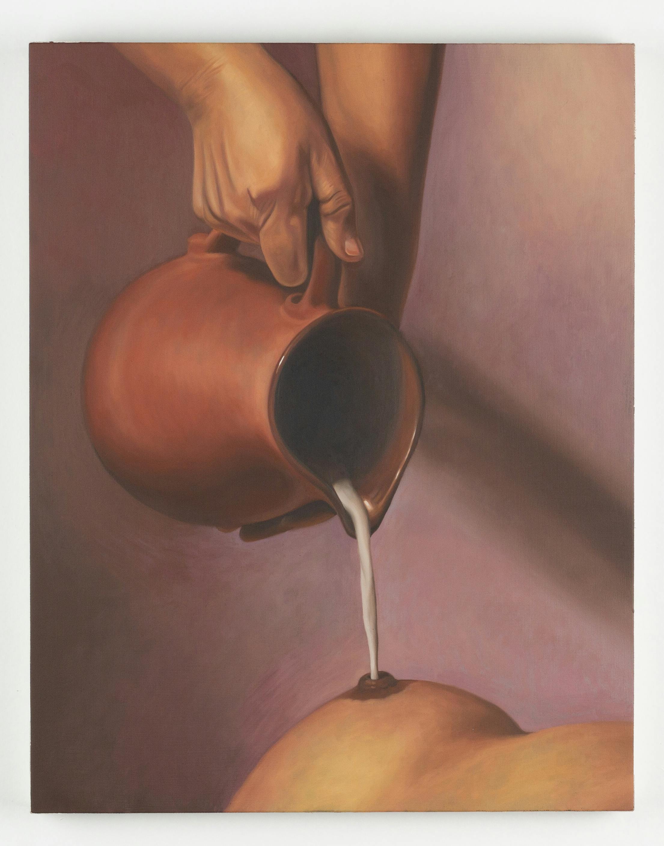 Milkgiver, 2023, oil on panel, 14 × 11 × 1 inches (35.56 × 27.94 × 2.54 cm)