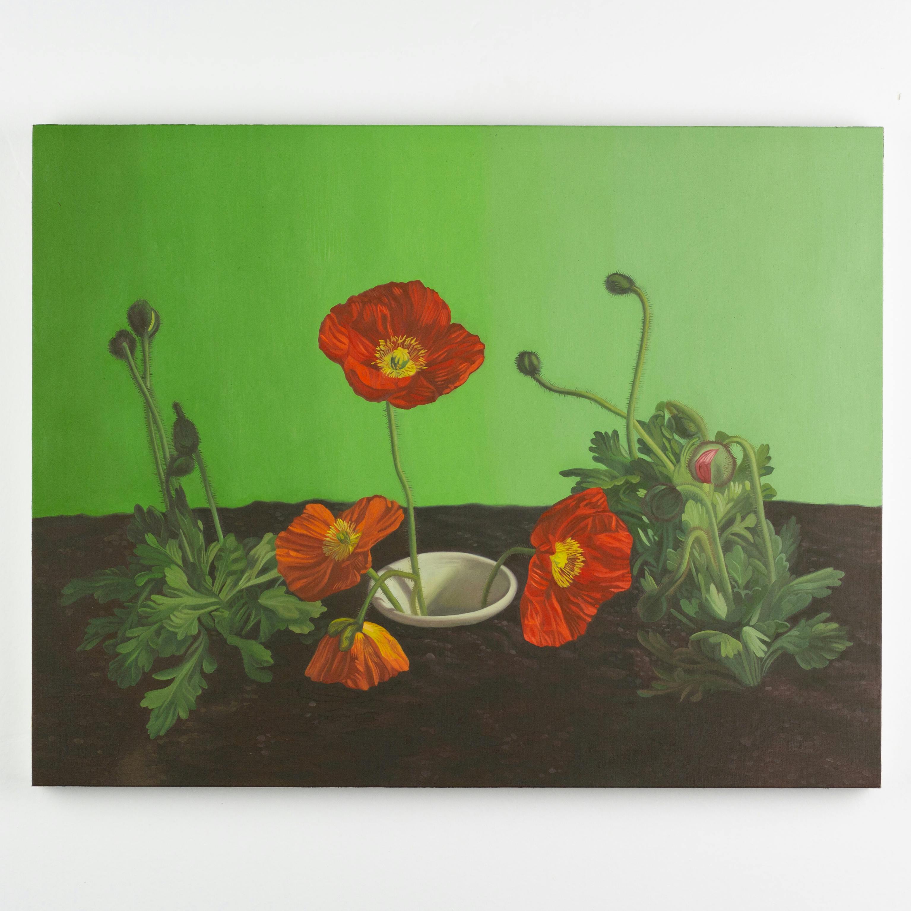 Nova Jiang (b. 1985, Dalian, China) lives and works in Los Angeles. Her practice includes painting, sculpture, conceptual art, installation, and public art, often combining new technology and traditional artmaking techniques in unfamiliar ways. Informed by her experience as a young immigrant growing up in New Zealand, as well as wider concerns over climate change and xenophobia, Jiang’s paintings juxtapose familiar elements and unexpected arrangements to explore the formation of identity and our uneasy relationships with nature.