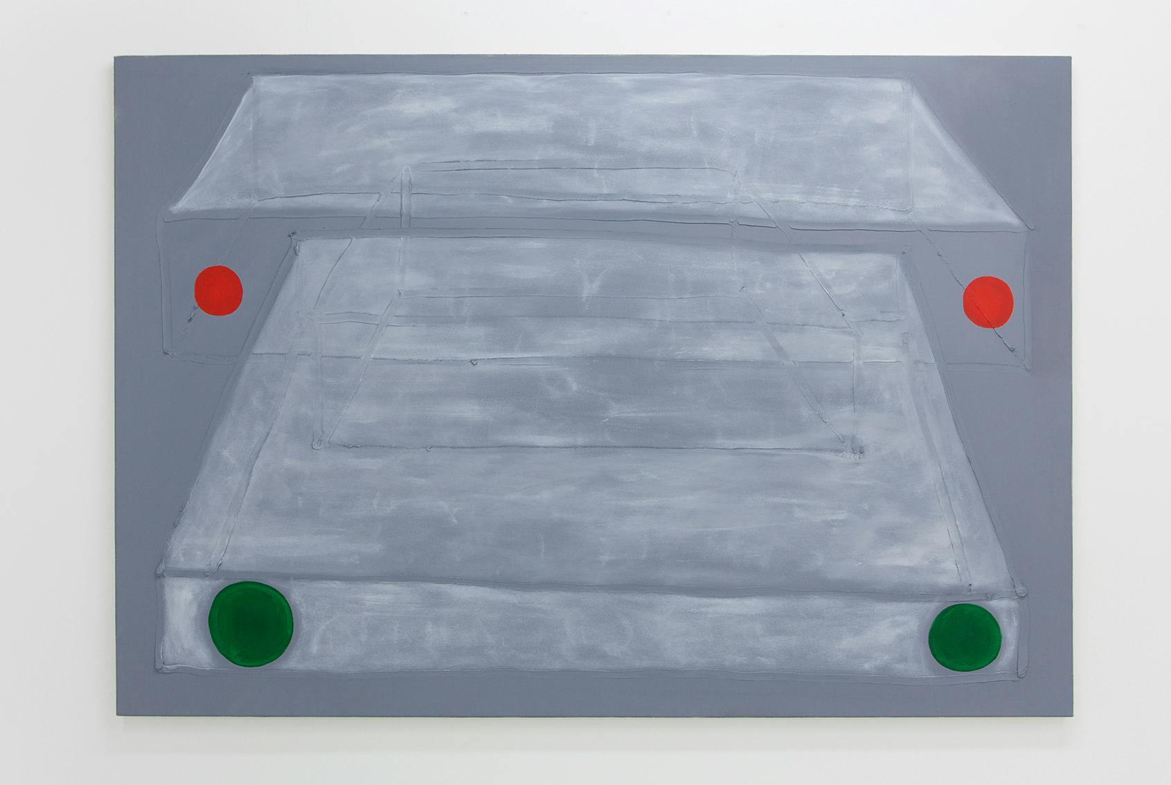Untitled (Three Grey Boxes, Transparent White, Two Red Points, Two Green Points), 2019, oil on canvas, 185 x 135 cm