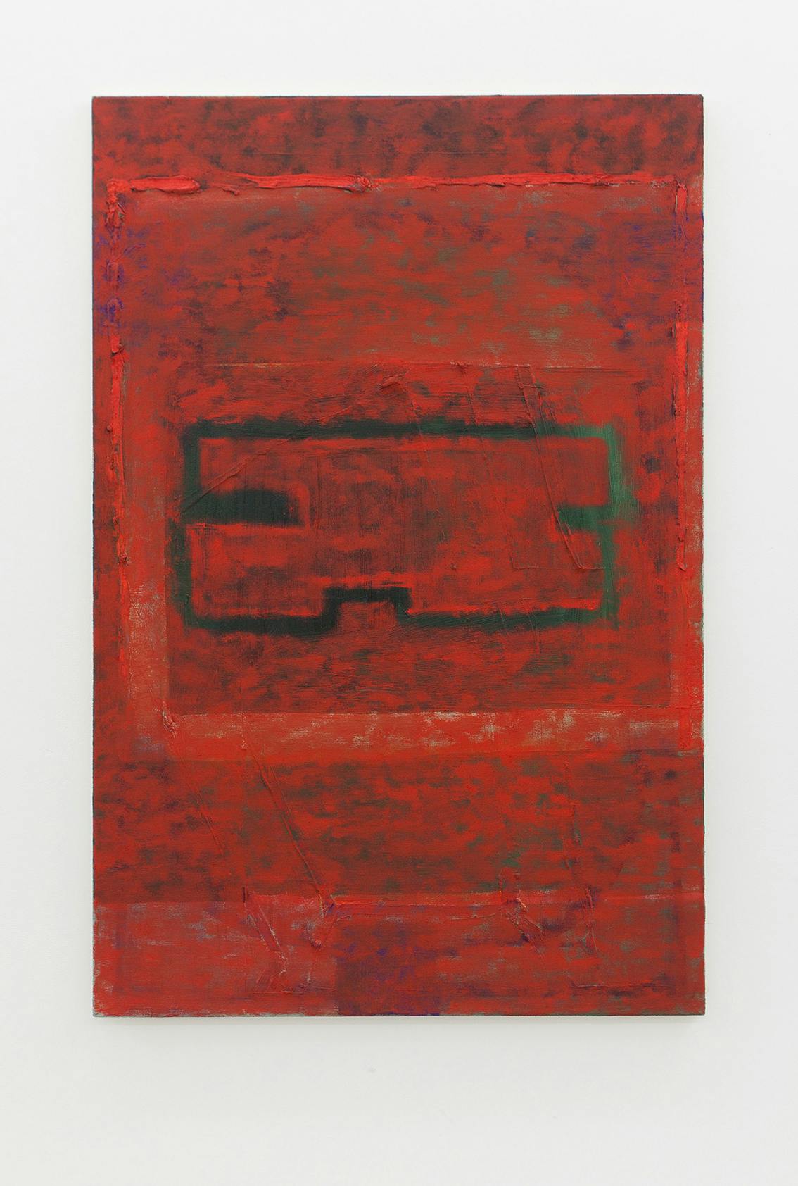 Untitled (Red Shape, Red Field, Dark Background), 2018, oil on canvas, 80 x 120 cm