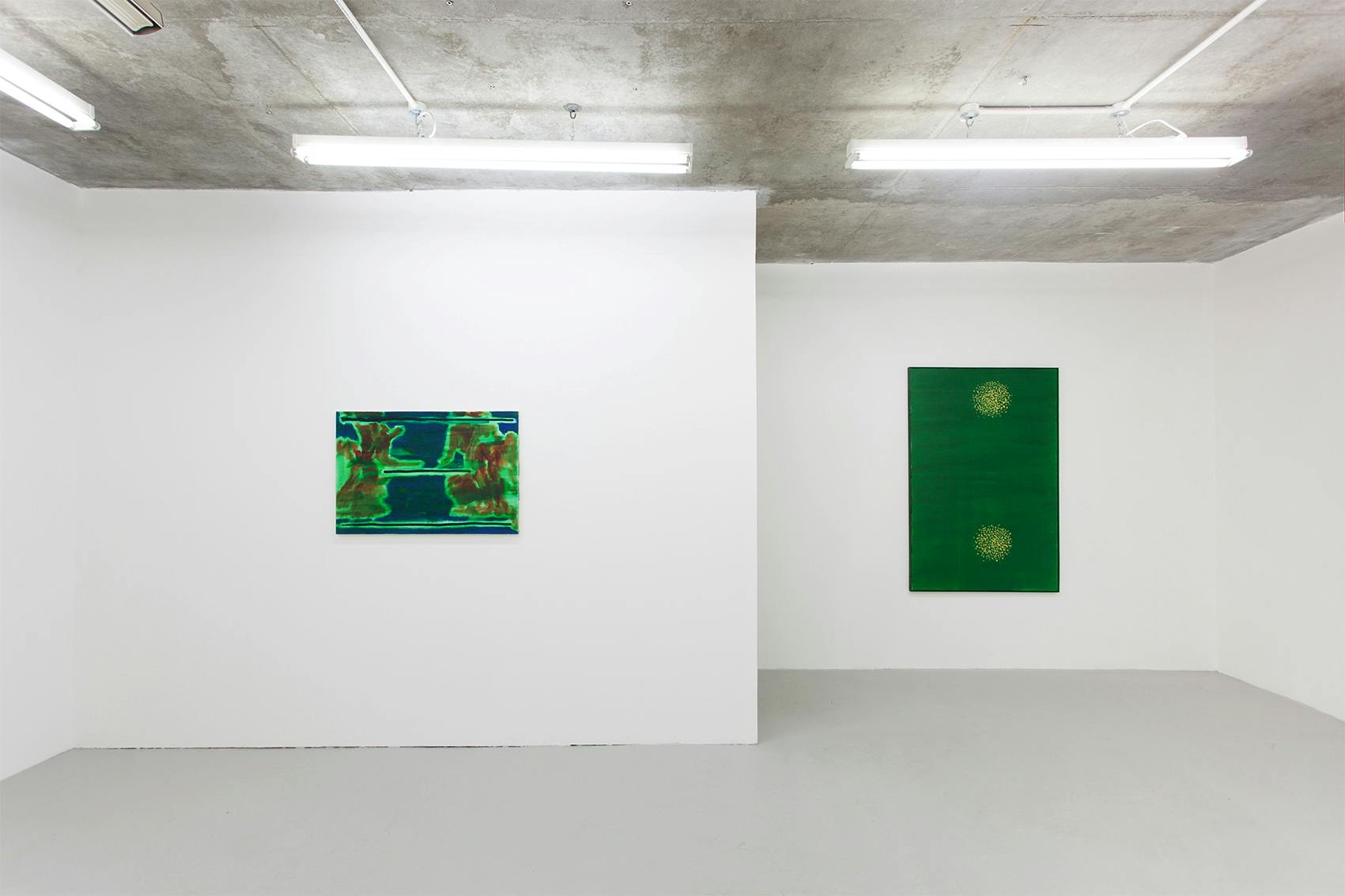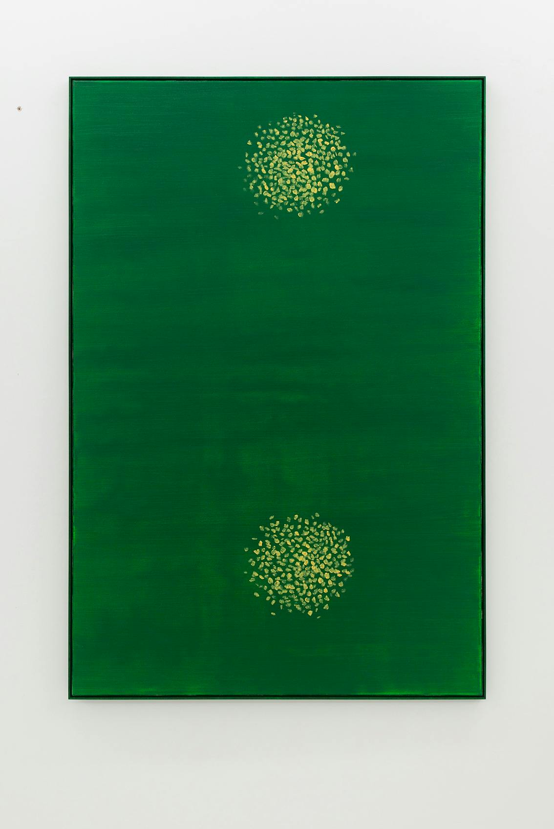 Untitled (Yellow Dots On Green) 2019, oil on canvas, 100 x 150 cm