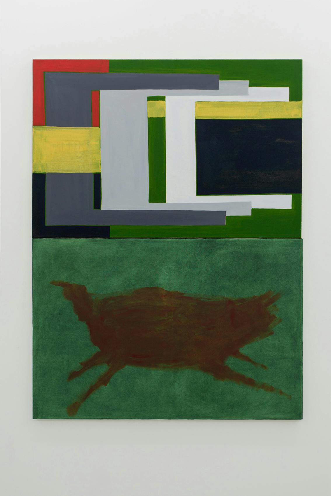Untitled (Top: Grey Fields, Green, Yellow, Red and Blue; Bottom: Red Animal, Green), 2018-2019, oil on canvas, 120 x 160 cm