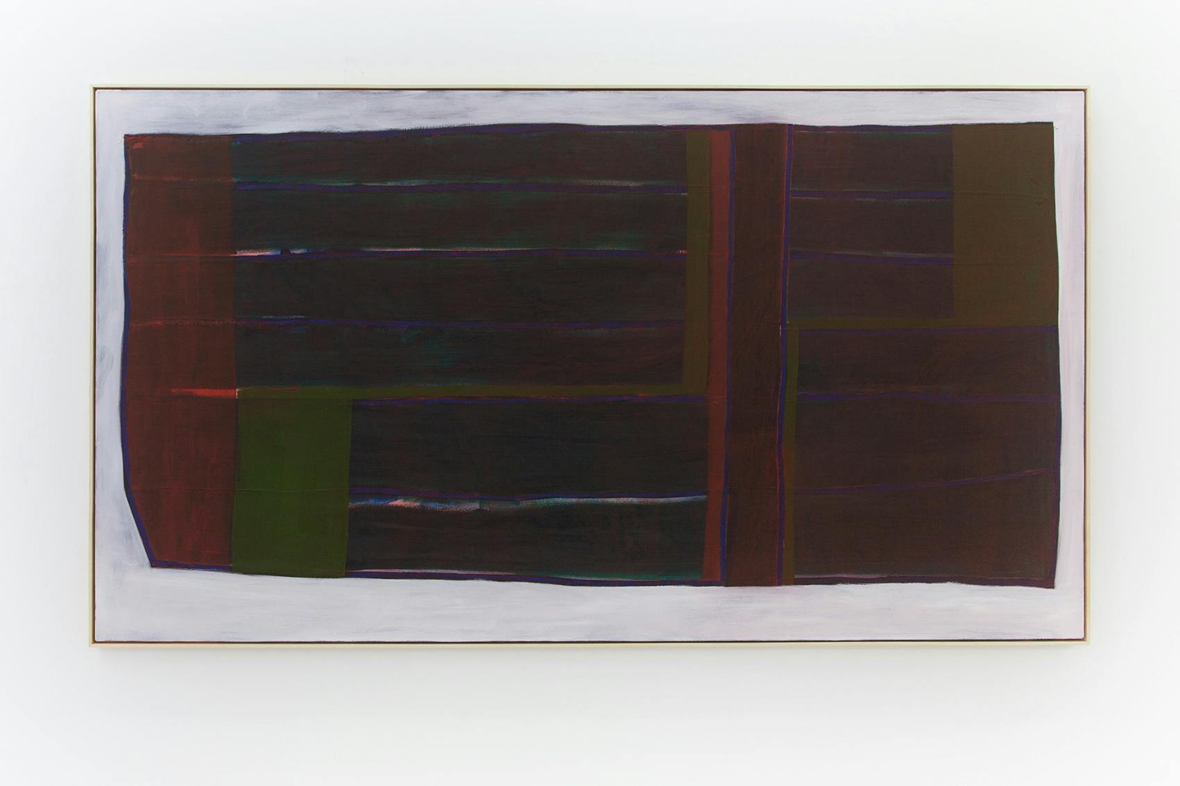 Untitled (Blue Lines, Phthalo Green, Red Wash, White), 2016-2019, oil on canvas, 245 x 135 cm