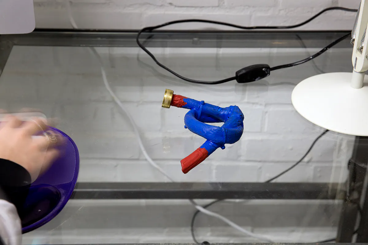 Pedro Wirz, Dials, 2014, rubber hose, latex, epoxy resin, metal components, 20 x 12 cm