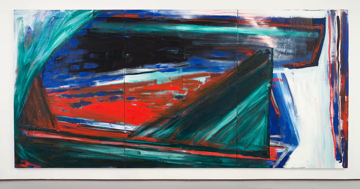 Max Ruf, The Monuments Proved Visible in The Morning, 2014, oil on canvas, 195 x 407 cm