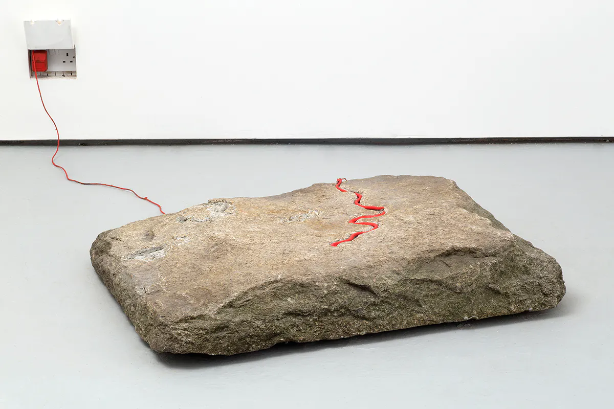 Olga Balema, Untitled (shaky blood stone), 2014, chiseled granite, motor, epoxy component glue, acrylic paint, 97 x 80 cm