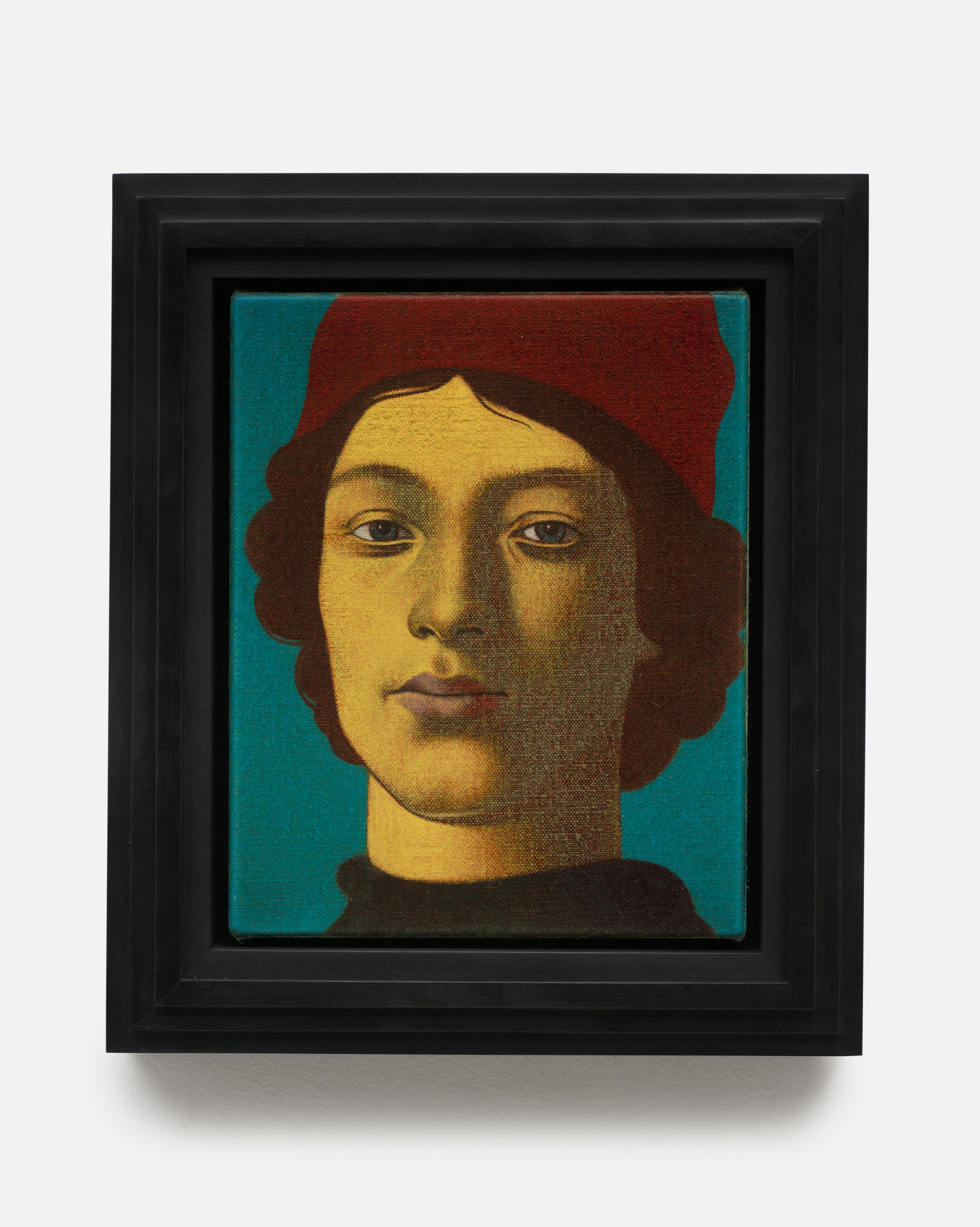 Oliver Osborne, Portrait of a Youth (after Filippino Lippi) II, 2025, oil on linen, 25 x 20.2 x 3 cm / 34 x 29 x 6 cm with frame