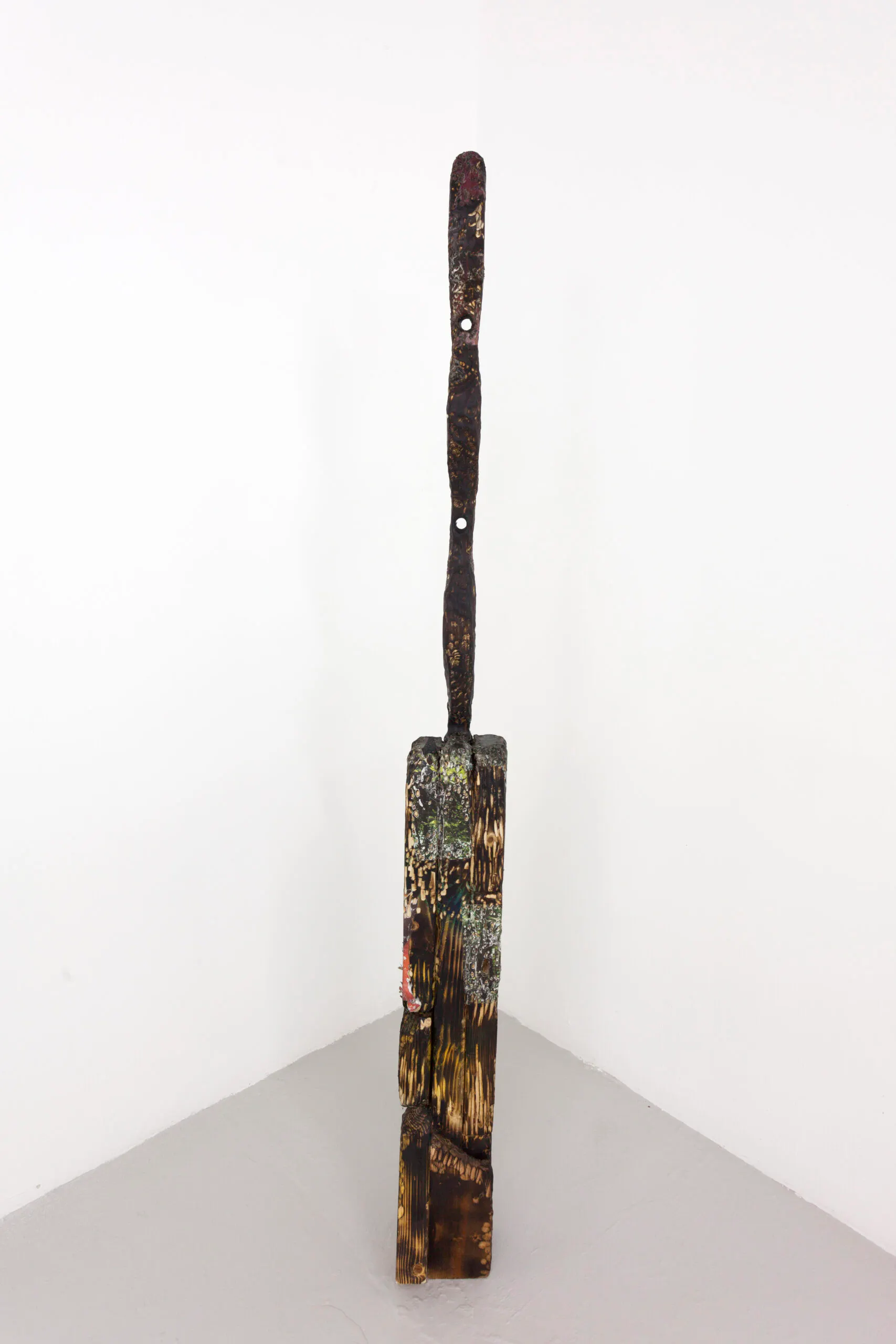 Anderson Borba, Needle, 2021, wood, paper and spray paint 156 x 17 x 13 cm