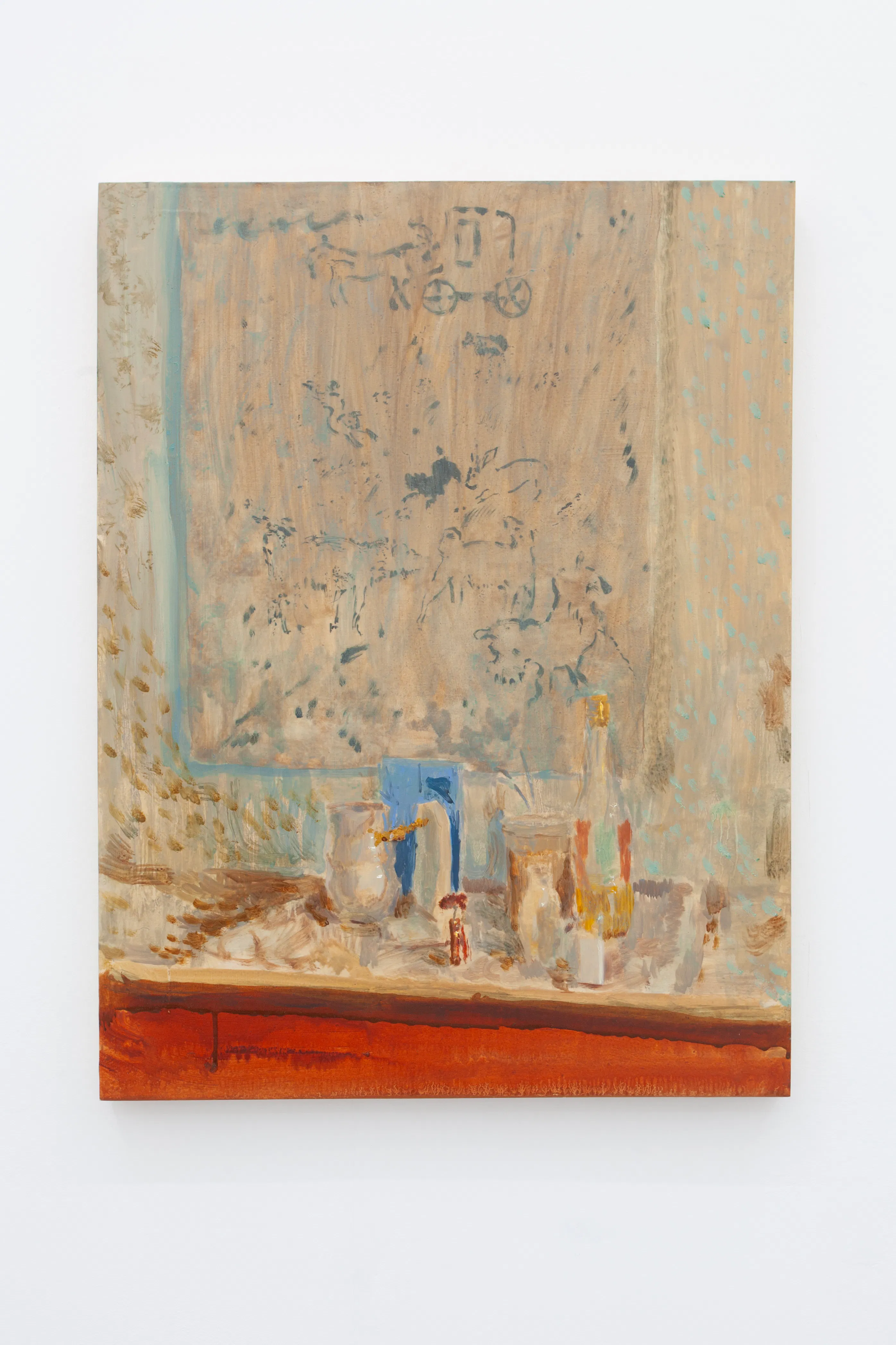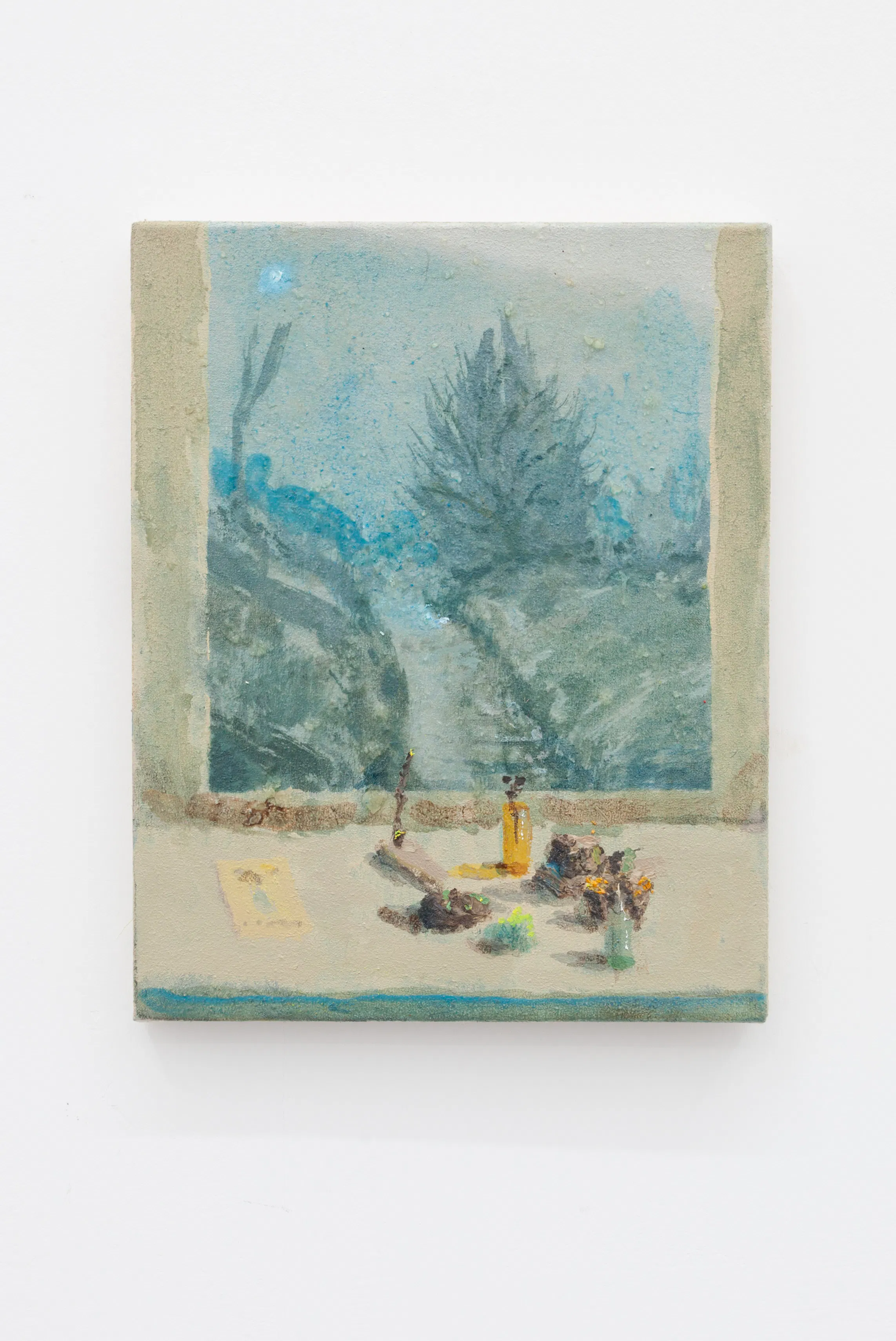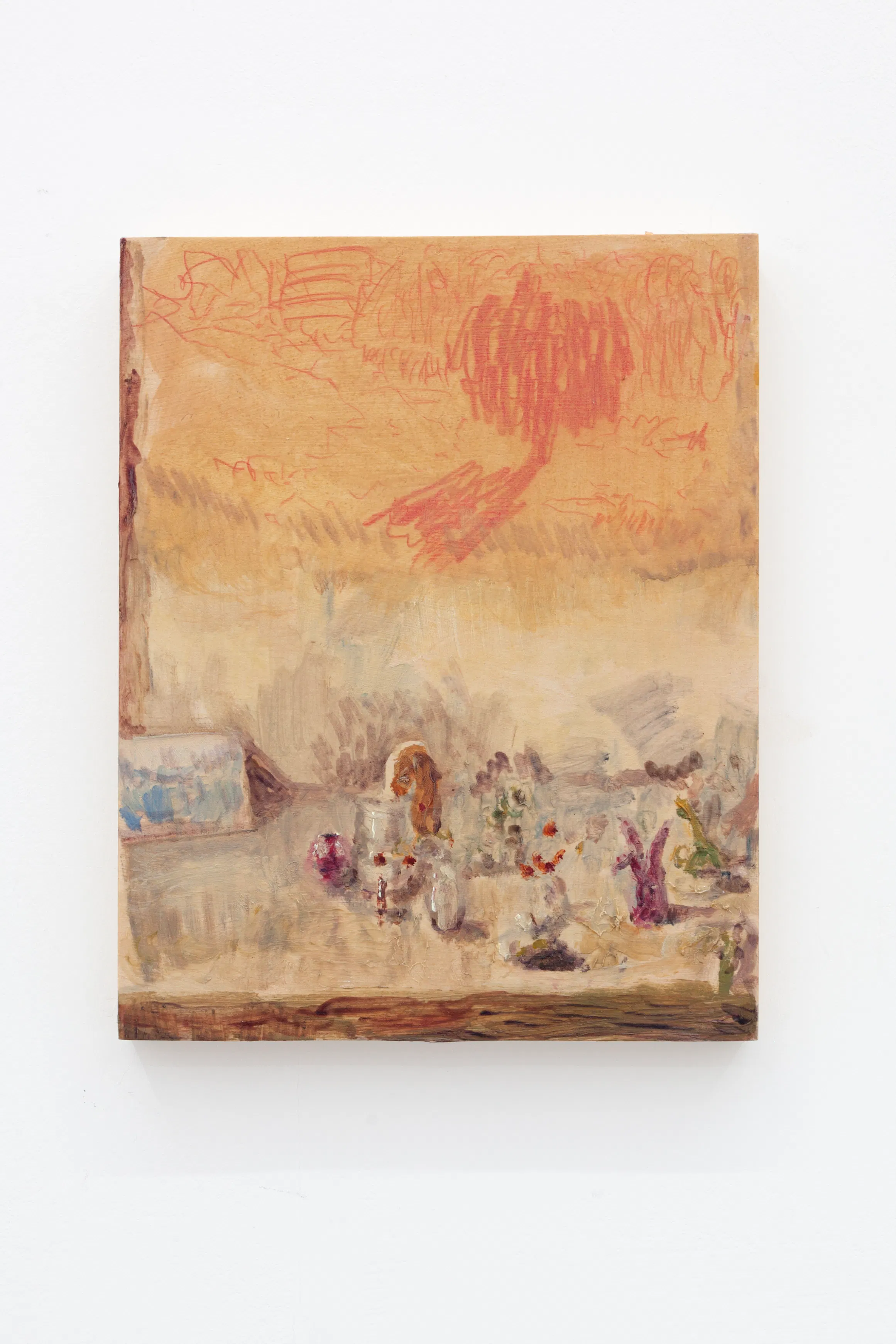 In the works presented in this exhibition we can see a shift in how Espejo (b. 1990, Santiago, Chile) deals with attention. Attention is still the raw material of his art, but while in his previous works, attention was consciously targeted and processed in the present moment, in this recent body of work, attention has shifted from the present moment to encompass a new back-and-forth complexity. By shifting his attention back to his own paintings after some time has passed, the artist creates something of a collage or pentimento. The task of revisiting becomes a new opportunity to adjust and change, just as we are constantly revisiting moments from the past in our own memories, what the artist has called “a mestizo, impure and mixed space.”