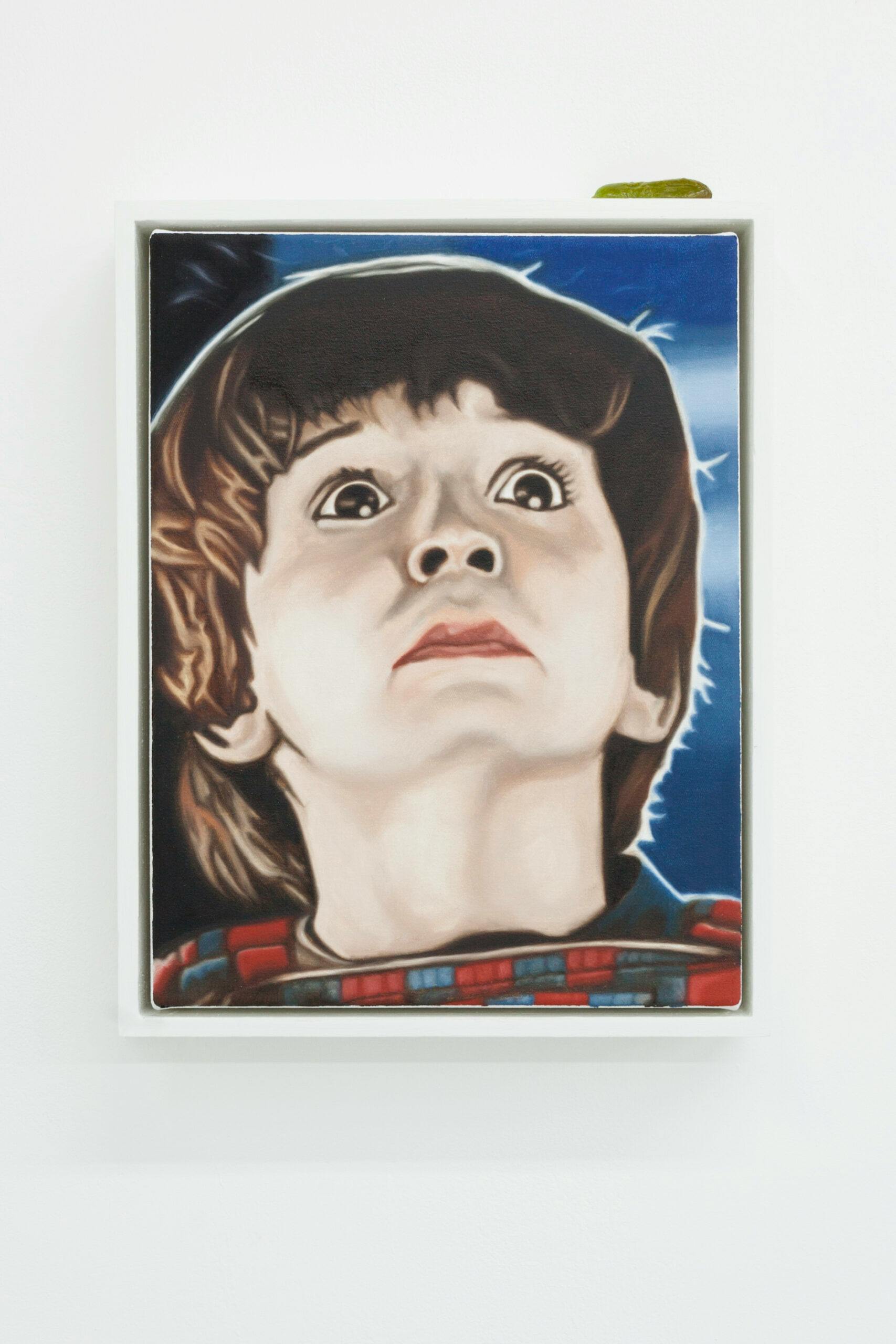 Yoan Mudry, Deep Impact 2, 2023, acrylic and oil on canvas, wood, rubber pickle, 35 x 27 cm