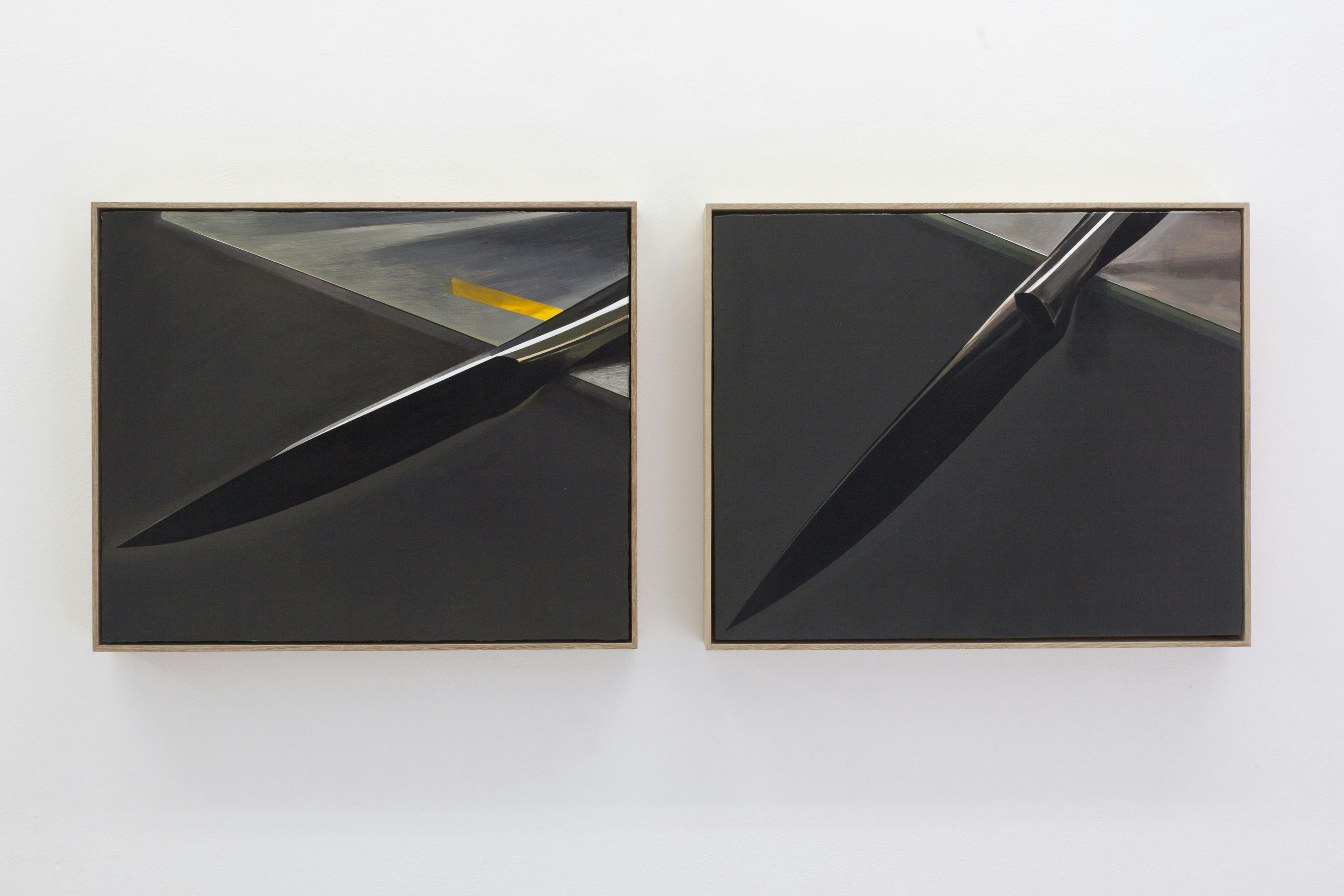 Zhan Chong, Untitled, 2024, acrylic on wood, two panels, 40 x 50 cm each